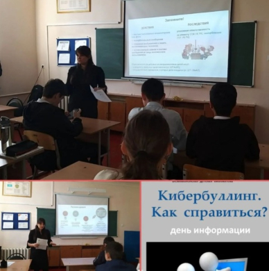 7.12.22 г. согласно плана профилактики правонарушений среди несовершеннолетних психолог школы Осипова Е.В. провела занятие с учащимися 9 В класса на тему: "Профилактика буллинга киберзапугивания".