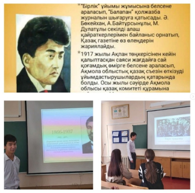 9 А сыныбында "Алаш идеялары" тақырыбында дөңгелек үстел ұйымдастырылды. Омирзакова Сабина Нығмет Нұрмақовтың өмірбаяны, еңбектерін ортаға салды. Мухажан Ажар Мағжан Жұмабаевтың шығармаларына тоқталып, шығармаларына талдау жасау арқылы Алаштың идеяларын,