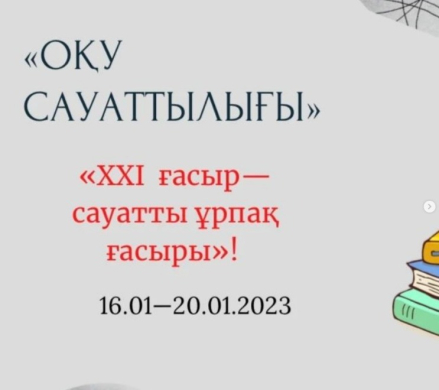 Қарағанды облысы білім беруді дамытудың оқу-әдістемелік орталығының ұйымдастыруымен 16.01-20.01.2023 ж. аралығында “XXI ғасыр- сауатты ұрпақ ғасыры!"оқу сауаттылық апталығы басталды. Осыған орай мектебімізде “XXI ғасыр-сауатты ұрпақ ғасыры"атты саптық жиы