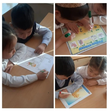 1 "А" сыныбында математикалық сауаттылық апталығы бойынша фигуралар әлеміне саяхат жасады, сонымен қатар ребус, сөзжұмбақтар шешті.
