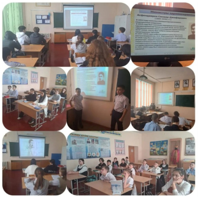 15.02 күні "Қазақстан тарихы сағаты" аясында 5-7 сыныптар аралығында оқушылар қазақтың белгілі тарихшысы С.Асфендияровтың өмірбаянымен, еңбектерімен танысып өз ойларын ортаға салды. Пән мұғалімі Құтжан Ж.Б