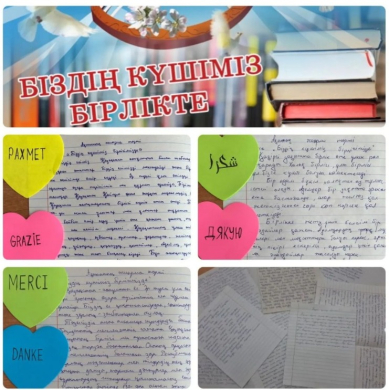 “Алғыс айту” күніне арналған іс-шаралар жоспарына сәйкес 9-11 сынып оқушылары “Біздің күшіміз бірлігімізде” тақырыбында эссе жазды.