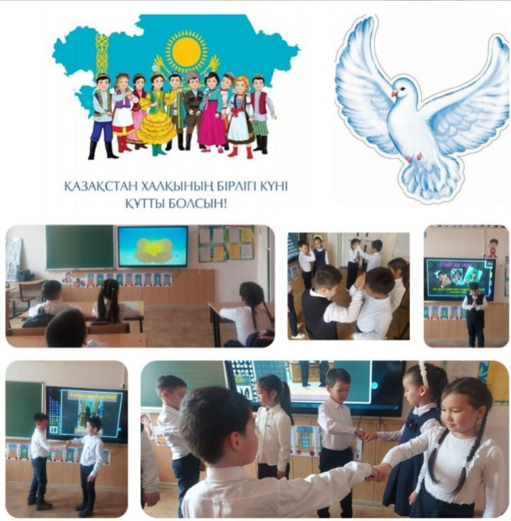 2"А" сыныбында "Ынтымақ- достық кепілі "тақырыбында тәрбие сағаты өтті. Оқушылар әр ұлттың сәлемдесумен танысып ,халықтар достығы туралы бейнежазба тамашалады. Мақсаты: Қазақстан халқының бірлігі күні екенін оқушыларға жеткізу.Ұлы қазақ даласында басқа ұл