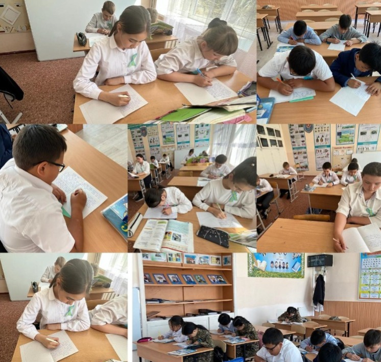 Мамыр мерекелері мен Жеңіс күніне орай, бүгін мектебіміздің 5 сынып оқушылары арасында, “Еркін ел ұрпағы” тақырыбында жалпыұлттық патриоттық диктант жазылды.