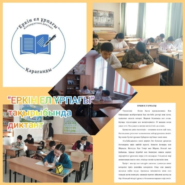 Қарағанды қалалық білім бөлімінің жоспарына сәйкес 9-мамыр жеңіс күніне орай 6-9 «А» сыныптары «Еркін ел ұрпағы» атты патриоттық тақырыпта диктант жазды.