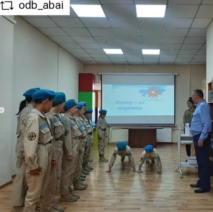 Показательный урок начальной военной подготовки провел воспитатель специализированного класса «Жас сарбаз» Т.С. Темиргалиев. Учащиеся продемонстрировали строевые упражнения, силовые состязания, спели строевую песню.