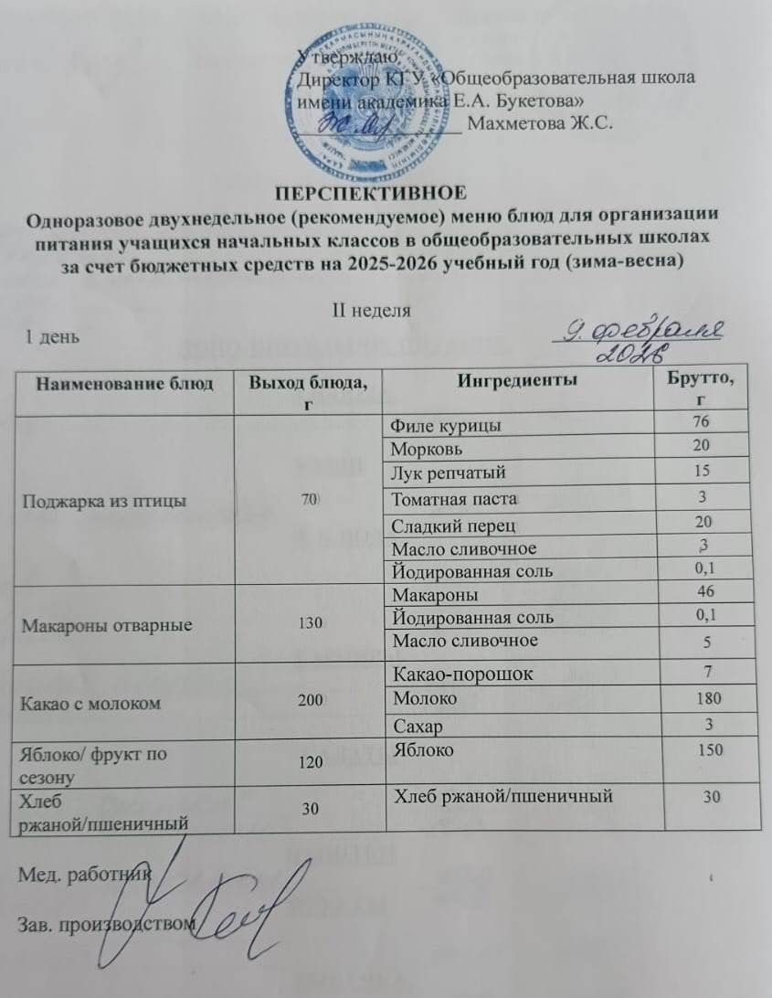 Питание школьников 9 февраля 2026 года