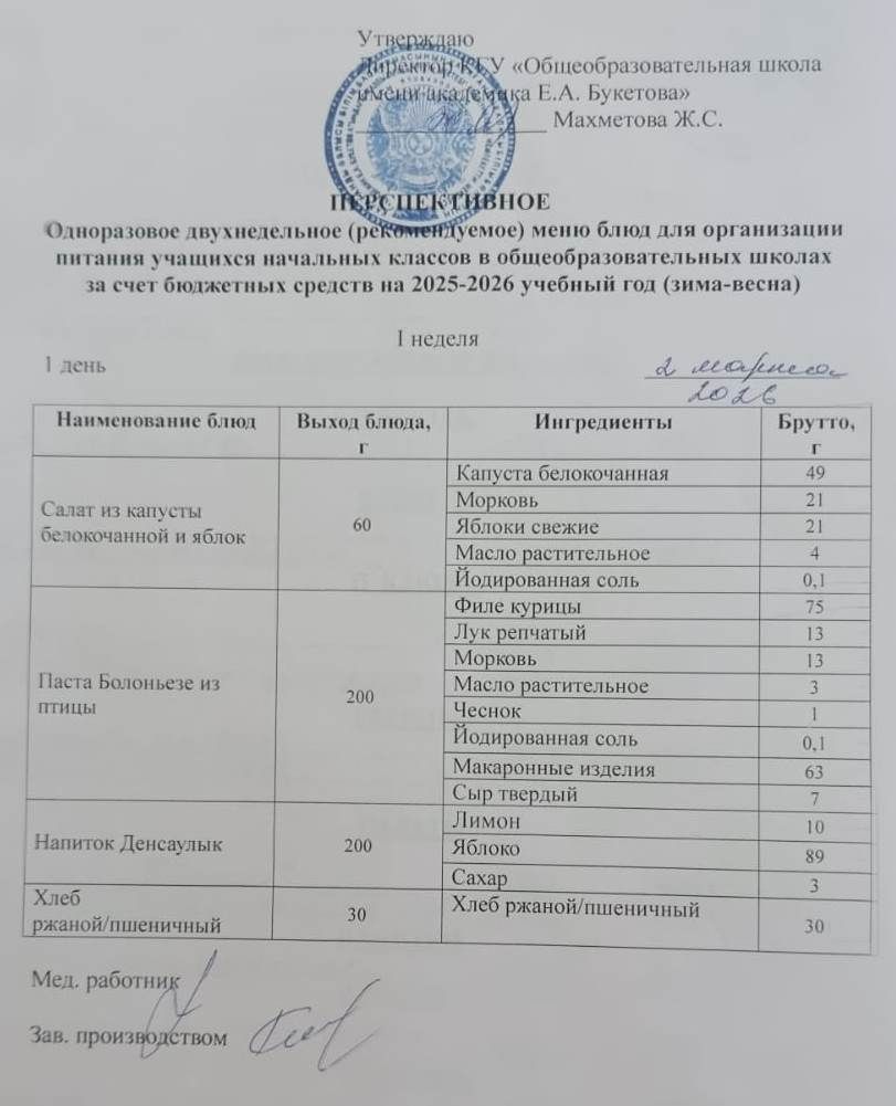 Питание школьников 02 марта 2026 года