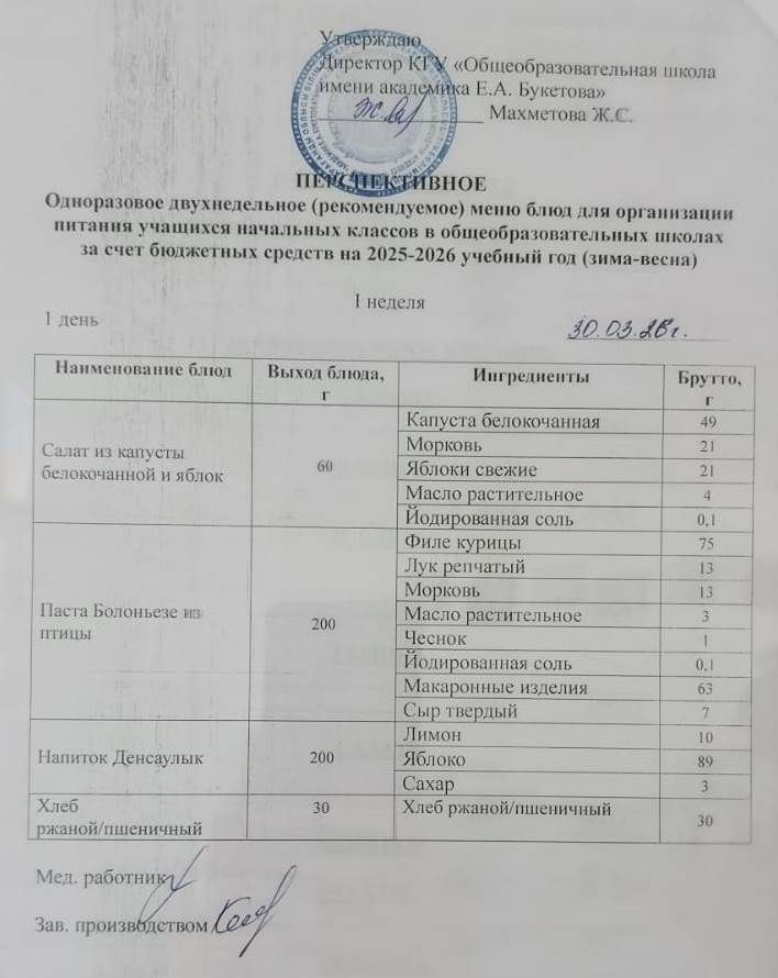 Мектеп әкімшілігінің жеке сұрақтары бойынша азаматтарды қабылдау кестесі
