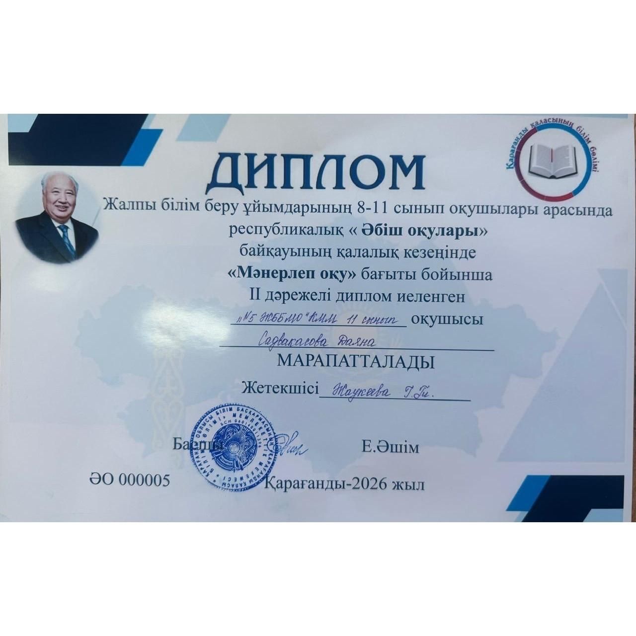 Республикалық "Әбіш оқулары" байқауының қалалық кезеңінде ІІ дәрежелі дипломмен марапатталған 11"А" сынып оқушысы Садвакасова Даянаны құттықтаймыз! #obb_qaragandy #umckrg #goroo_krg @_. Jjuna .