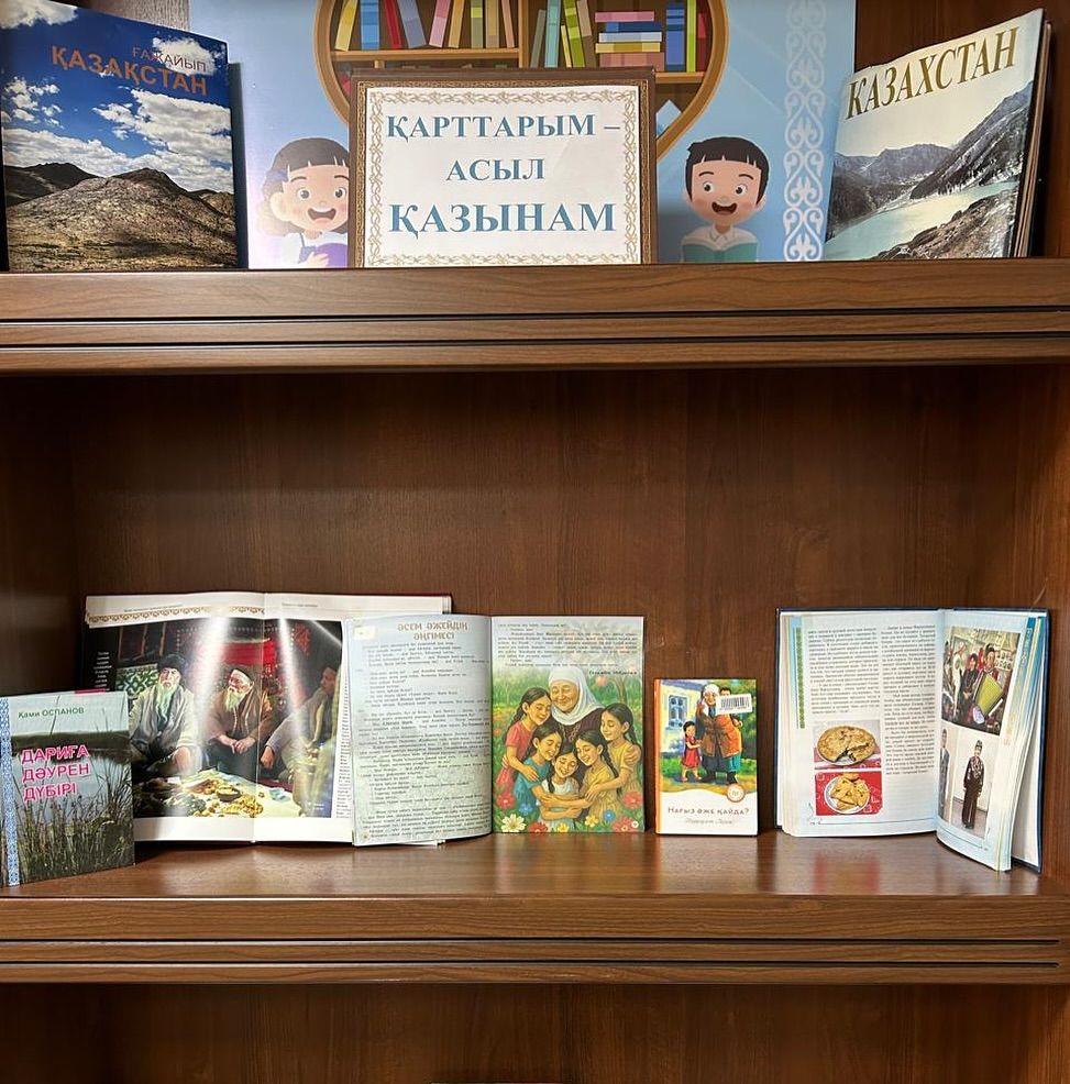 Халқымыздың баға жетпес қазынасы қарилар күніне орай “Қарттарым - асыл қазынам” атты кітап көрмесі ұйымдастырылды. Мақсаты: көненің көзі қарияларымыздың асыл сөздері мен ұлағаты жайлы деректер беру.