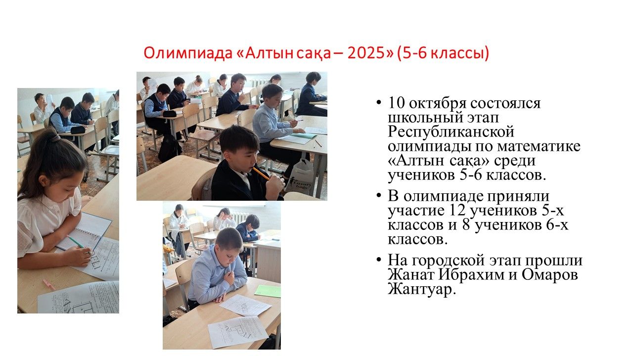 10 октября состоялся школьный этап Республиканской олимпиады по математике «Алтын сақа» среди учеников 5-6 классов.