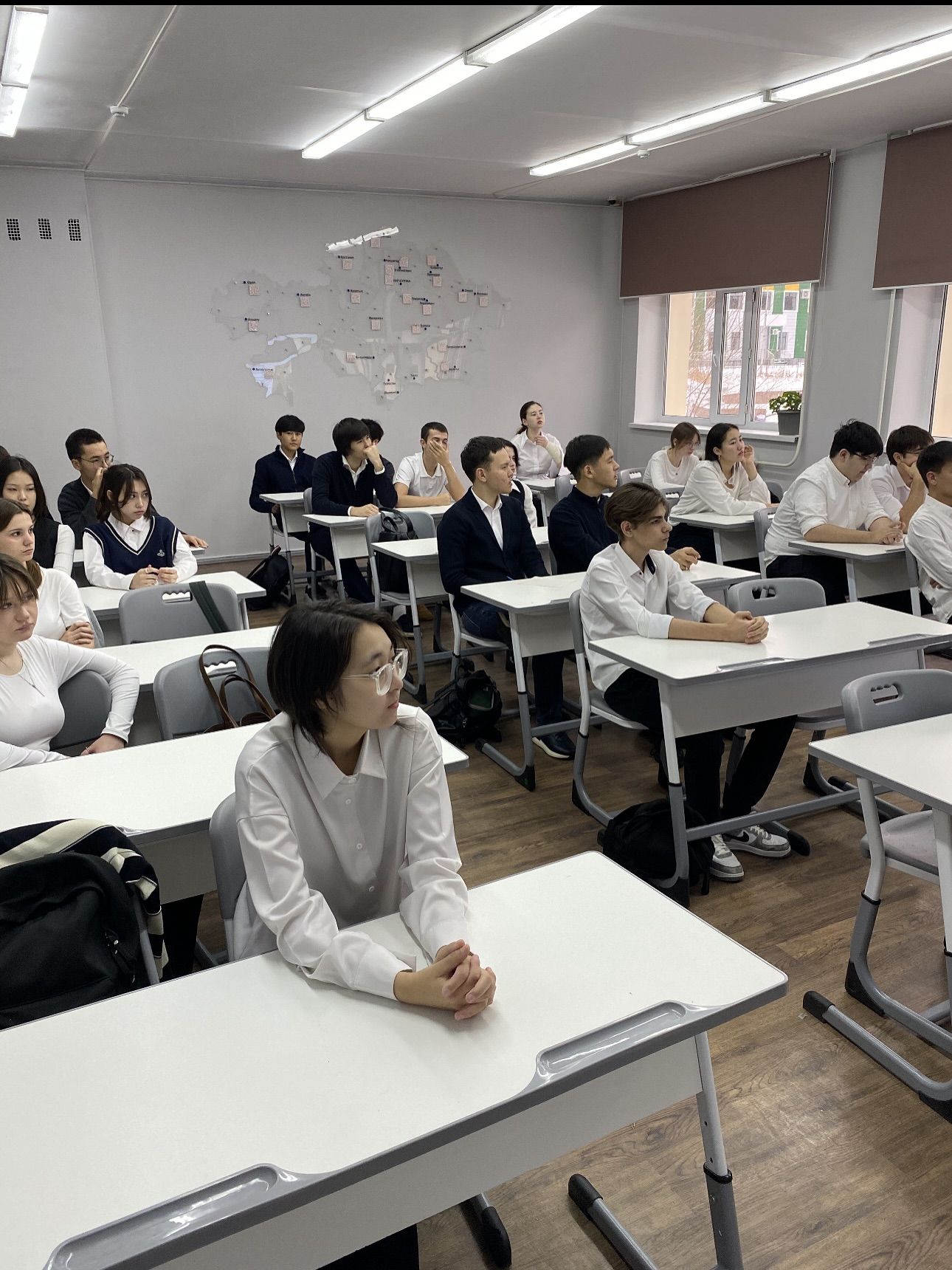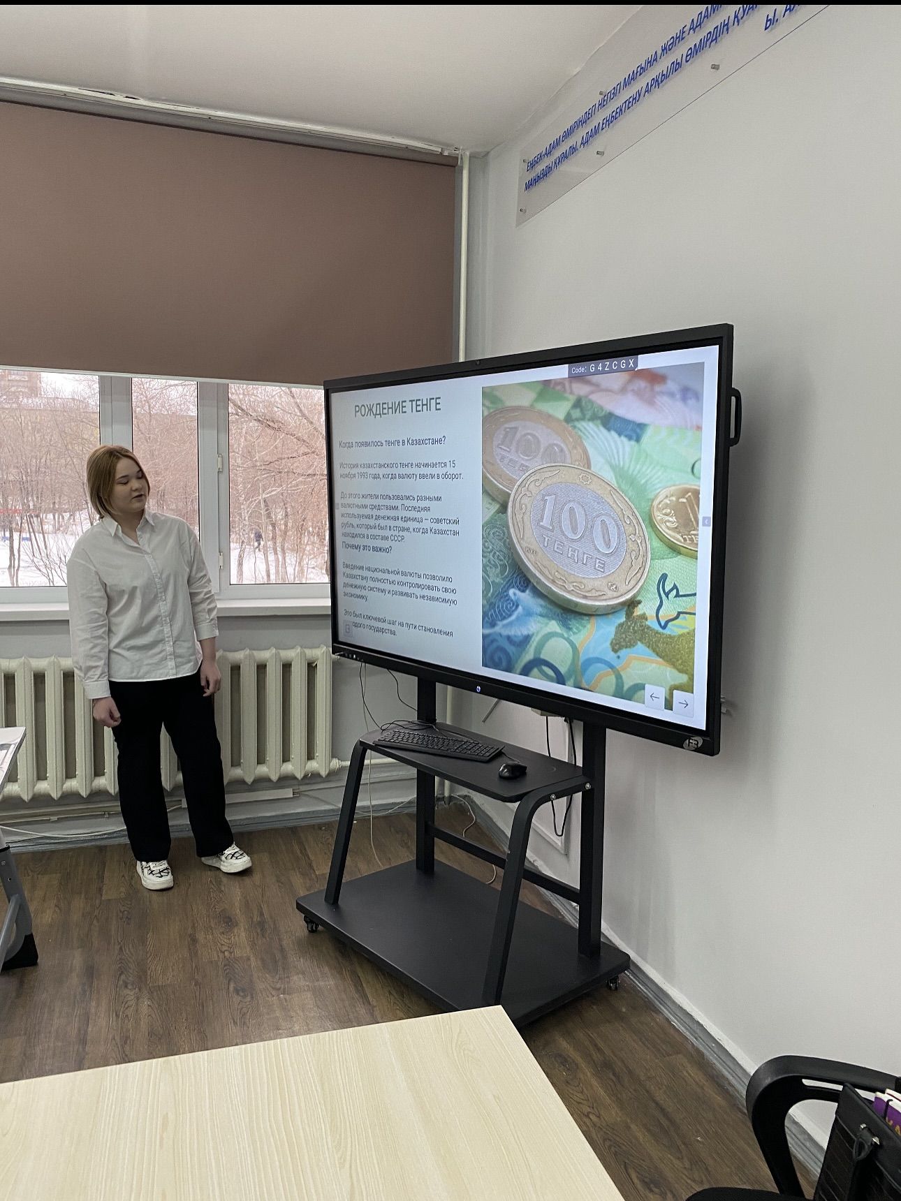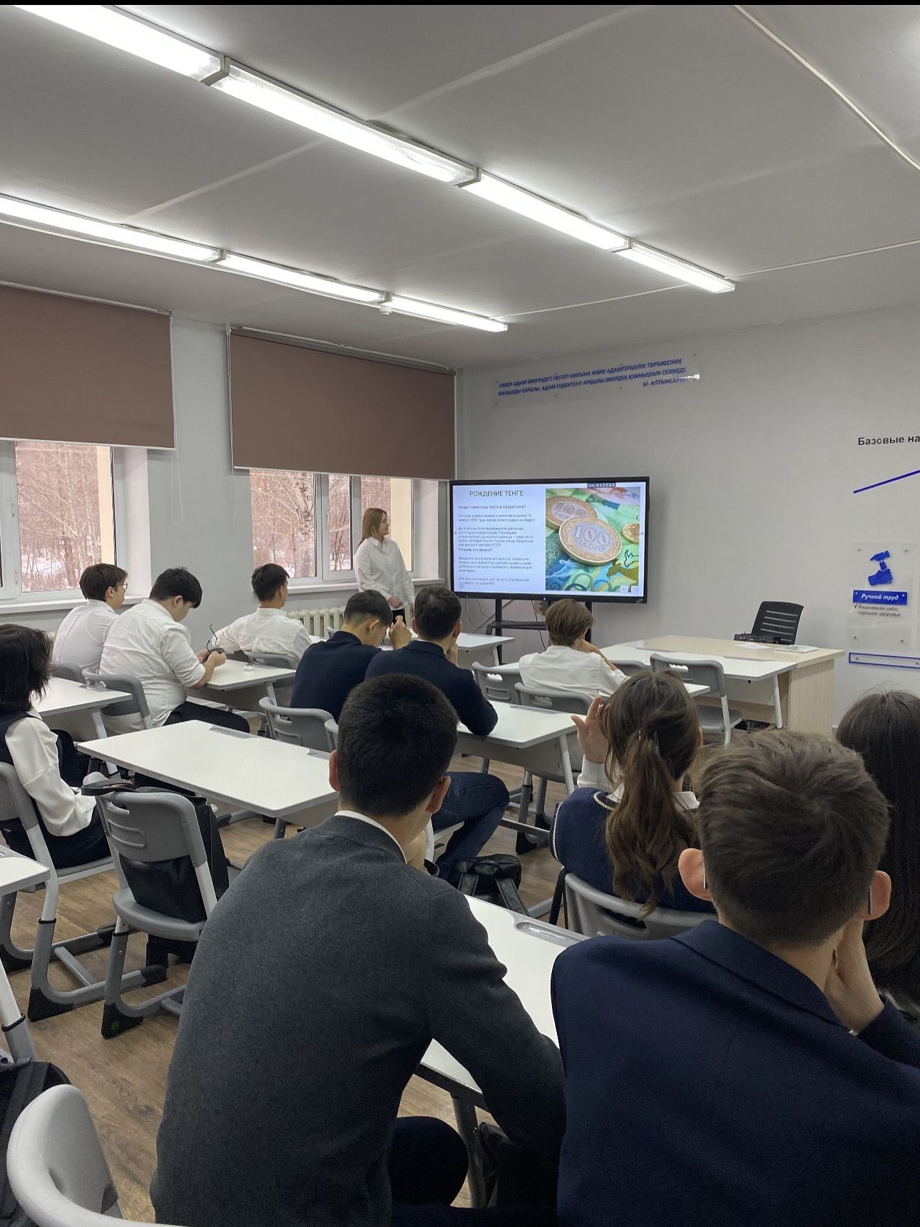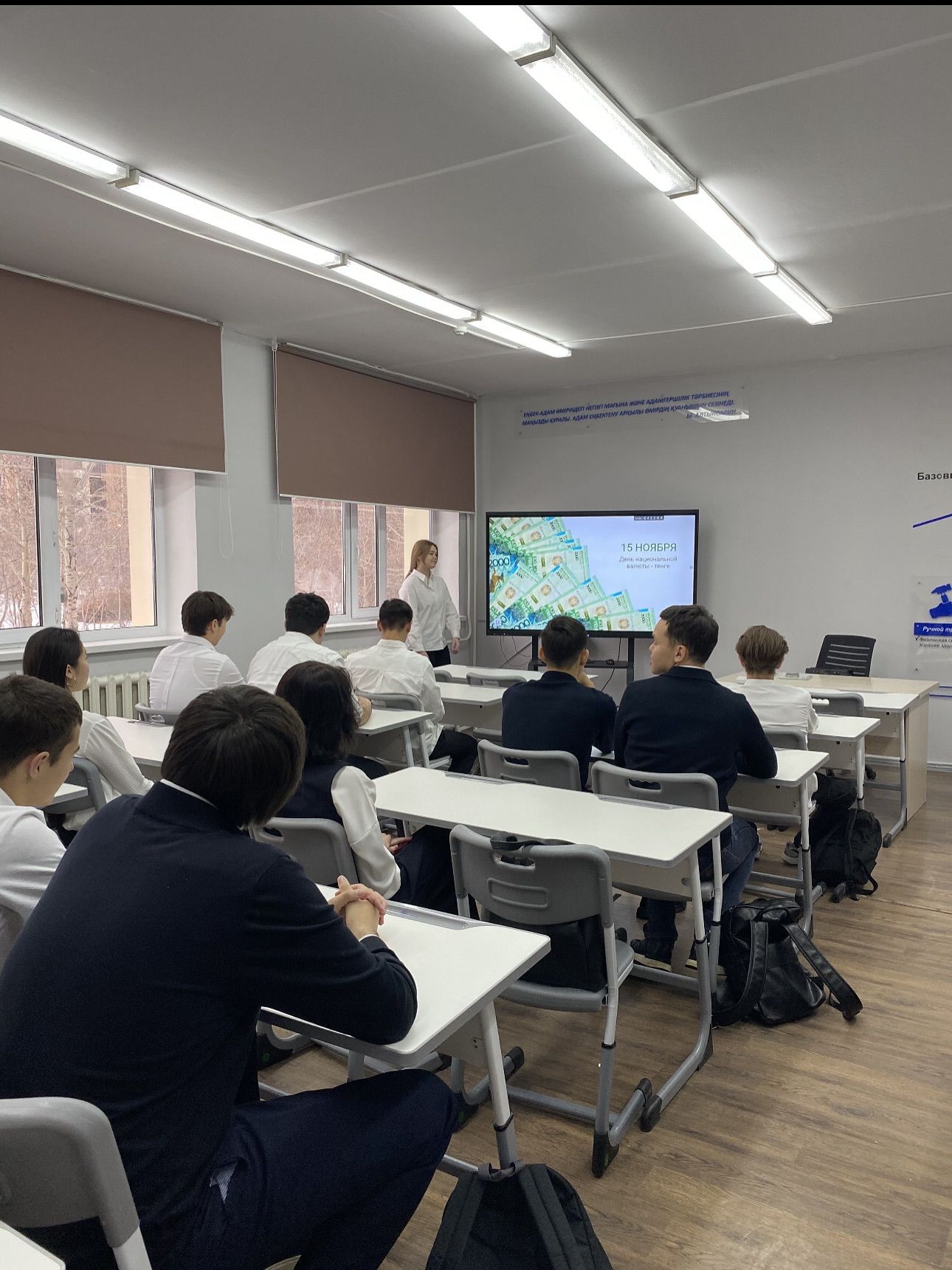 10.11.2025 в 11А классе был проводен классный час на тему «Толерантность- это язык добрых дел и слов» и «День национальной валюты-тенге». Ученица 11А Асылбекова Сальмина выступила с презентацией