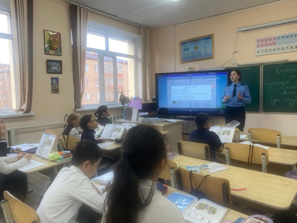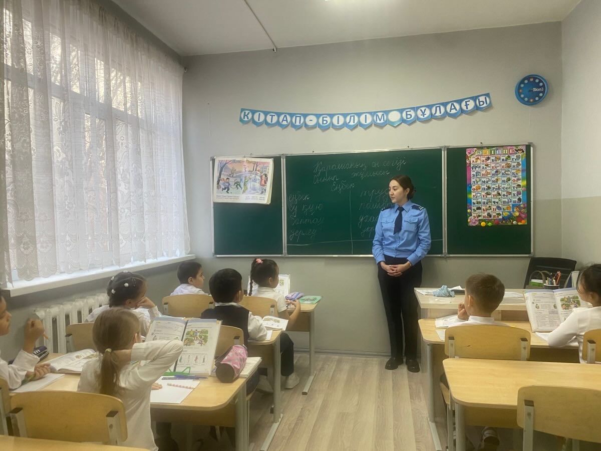 “Профилактика дорожной безопасности среди школьников”. Инспектор Юго-Восточного ОП выступмли среди учащихся начальных классов.