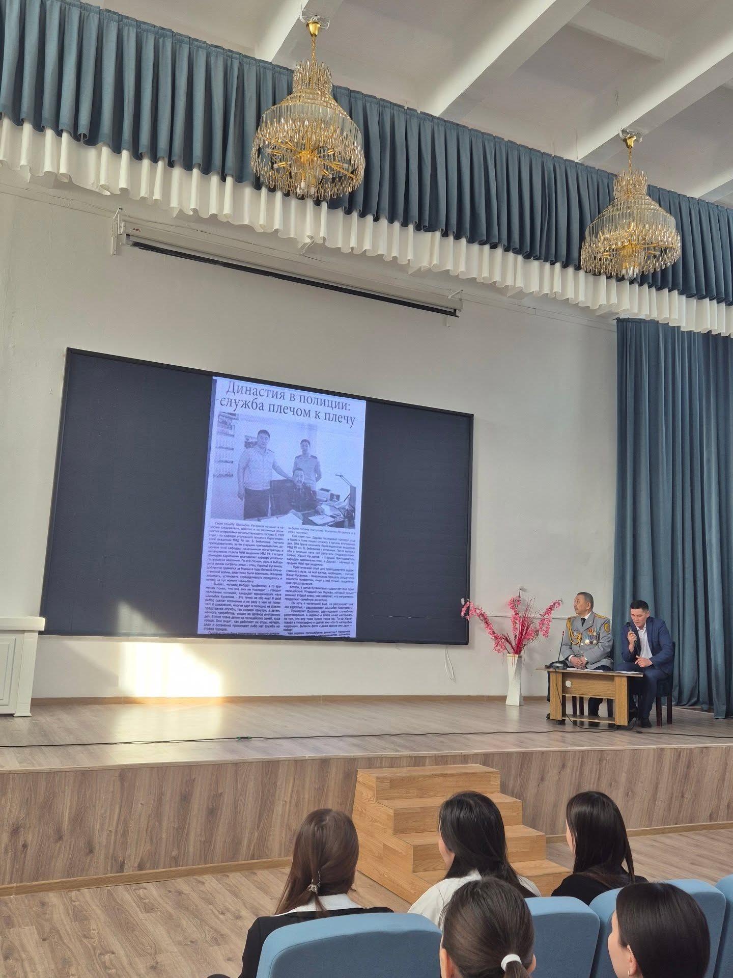Бүгін Ыбырай Алтынсарин атындағы мектеп-лицейінде «Өнегелі өмір» жобасы аясында полиция полковнигі, ішкі істер органдарының үздігі, Заң ғылымдарының кандидаты, Орталық Қазақстан Академиясының профессоры Құсайынов Шыныбек Қаратайұлымен «Менің өмірімнің өткелдері» тақырыбында кездесу өтті. Кездесу барысында Шыныбек Қаратайұлы өмірі мен еңбек жолы туралы айтып, оқушылардың қойған сұрақтарына жауап берді. Шыныбек Қаратайұлы оқушыларды адал, білімді, отансүйгіш болуға шақырды.