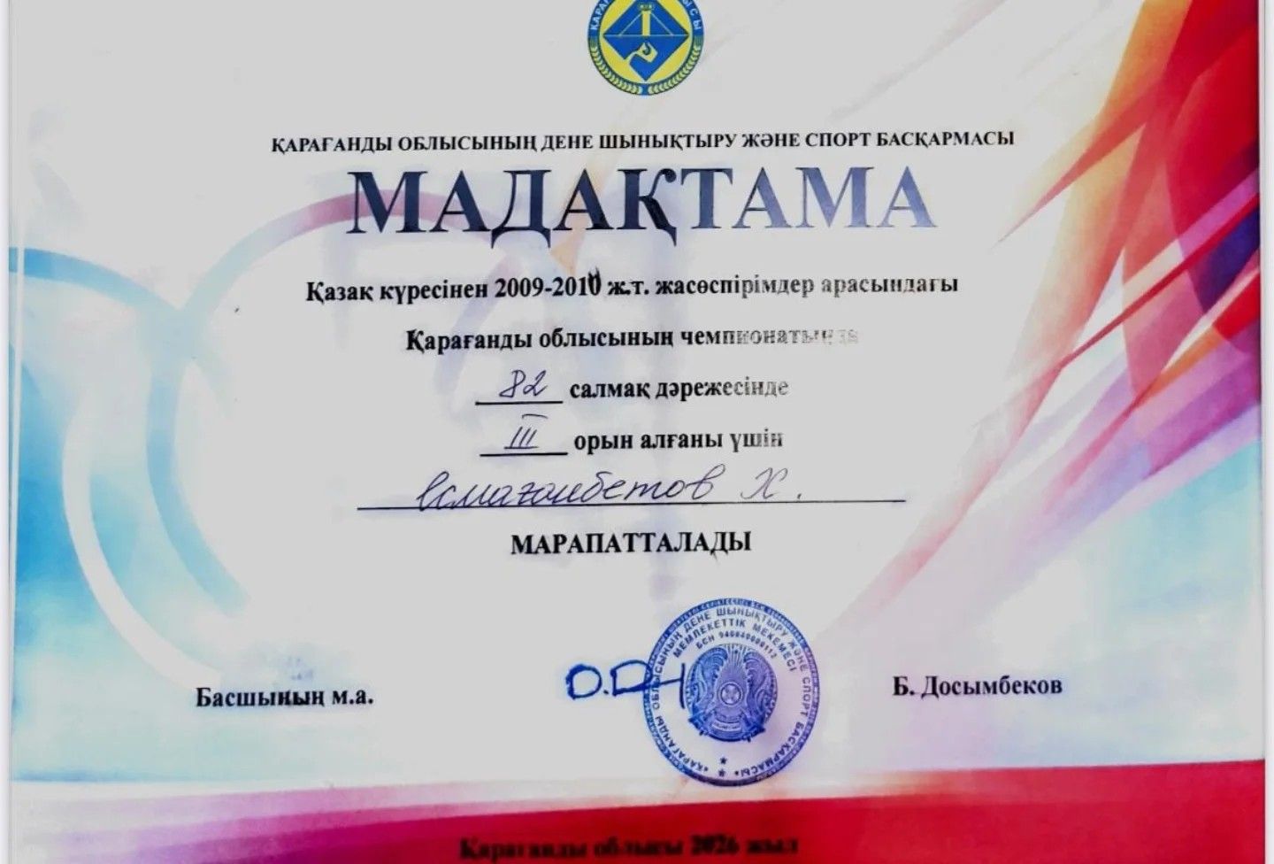 12 ақпанда өткен Қазақ күресінен 2009-2010 жылы туылған жасөсрірімдер арасындағы Қарағанды облысының чемпионатында 10 Ә сынып оқушысы Есмагамбетов Хасанамир жүлделі орынға ие болып ІІІ дәрежелі дипломмен марапатталды