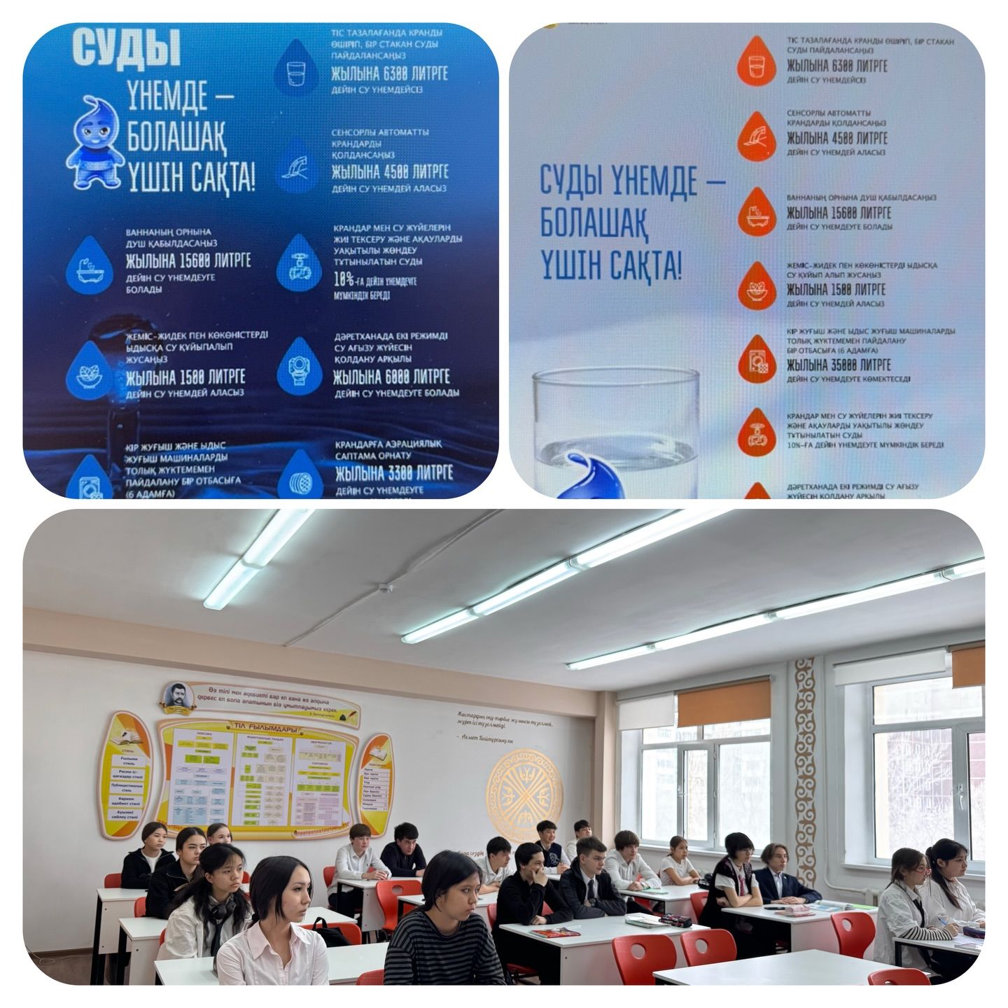 Бүгін КММ «Ы. Алтынсарин атындағы мектеп-лицейінде» 9-11 сынып оқушылары арасында ашық сабақтар өткізілді.Сабақ тақырыбы: Су қоймалары және қаланы сумен қамтамасыз ету (Қапшағай су қоймасы мысалында). Ауыл шаруашылығында суды үнемдеу.