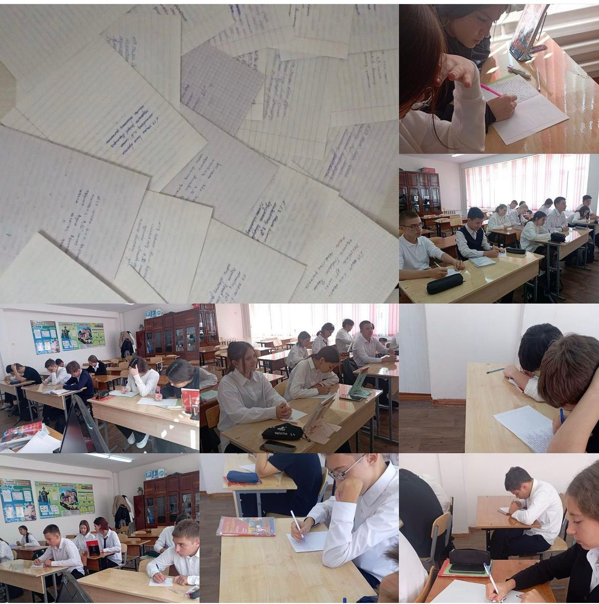 9 “Б”,”В”,”Г” сыныптары”Біртұтас тәрбие” бағдарламасы аясында жалпы облыстық ашық диктант жазды. Жауапты пән мұғалімі Б.К.Абеуова.