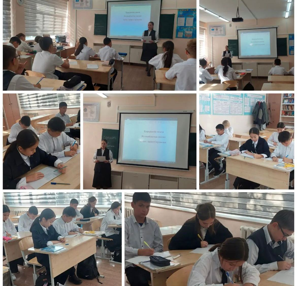 2024 жылдың 9-қыркүйегінде 6 "Б",7"Г" сыныптарының білім алушылары "Еңбек-қасиетті құндылық" тақырыбында жалпыоблыстық диктант жазуға қатысты.