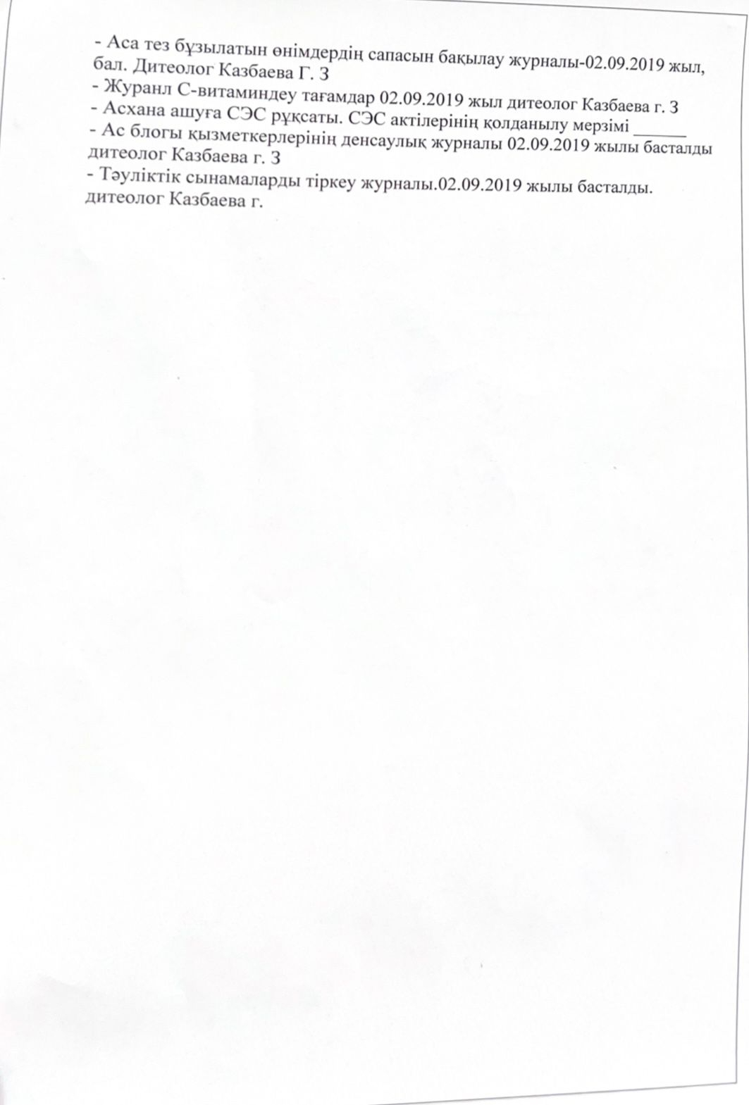 Мектеп асханасының паспорты