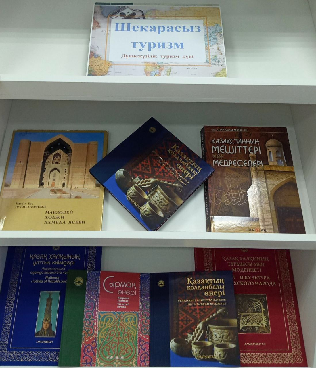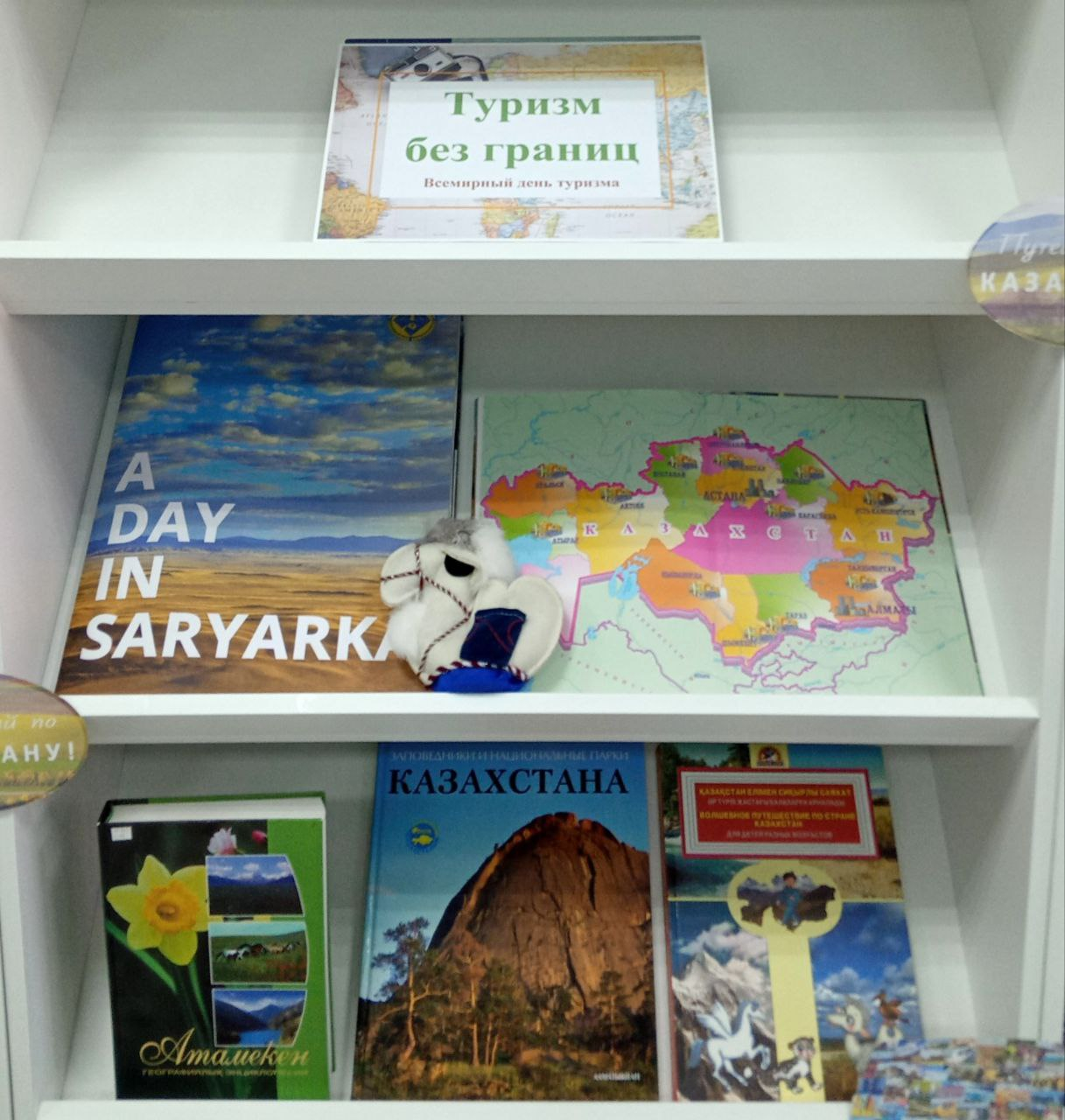 "27 сентября – Всемирному дню туризма" в школьной библиотеке представлен просмотр литературы «Шекарасыз туризм /Дүниежүзілік туризм күні» из фонда школьной библиотеки и библиотеки-филиала №4 ЦБС им.М.Ауэзова для разных групп читателей. #Адал_азамат #День_туризма