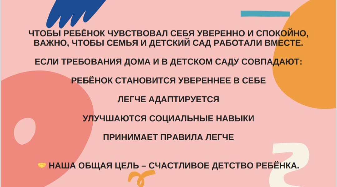 В ходе встречи обсуждались важность совместной работы семьи и детского сада, влияние поддержки родителей на развитие ребёнка, а также практические способы укрепления сотрудничества. Родителям предложены рекомендации по поддержке детских навыков и формированию уверенности у ребёнка в домашних условиях.
