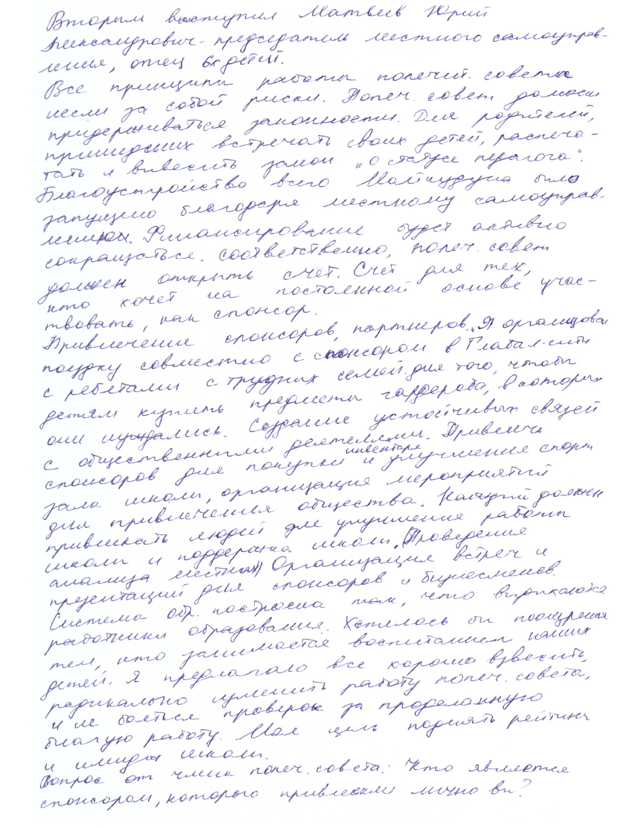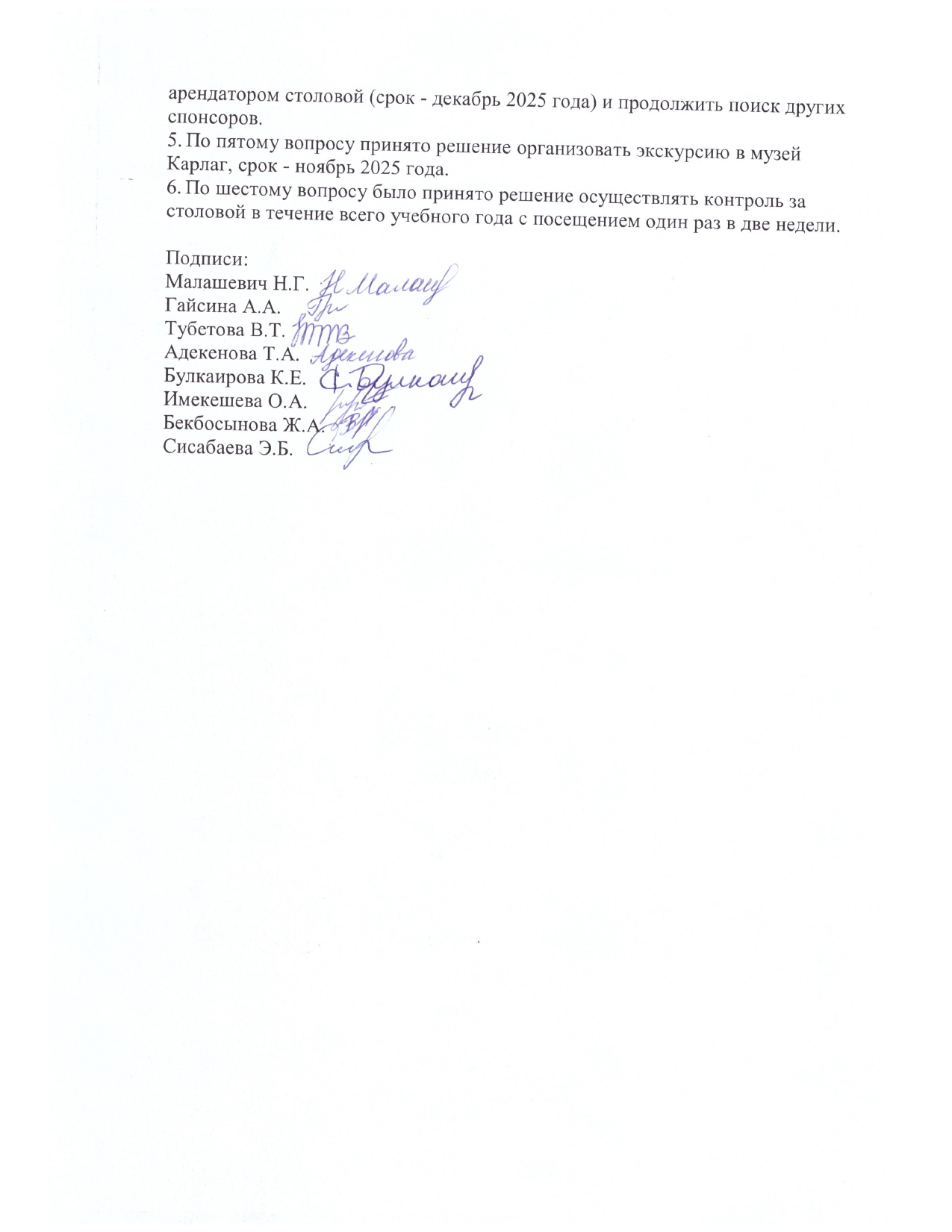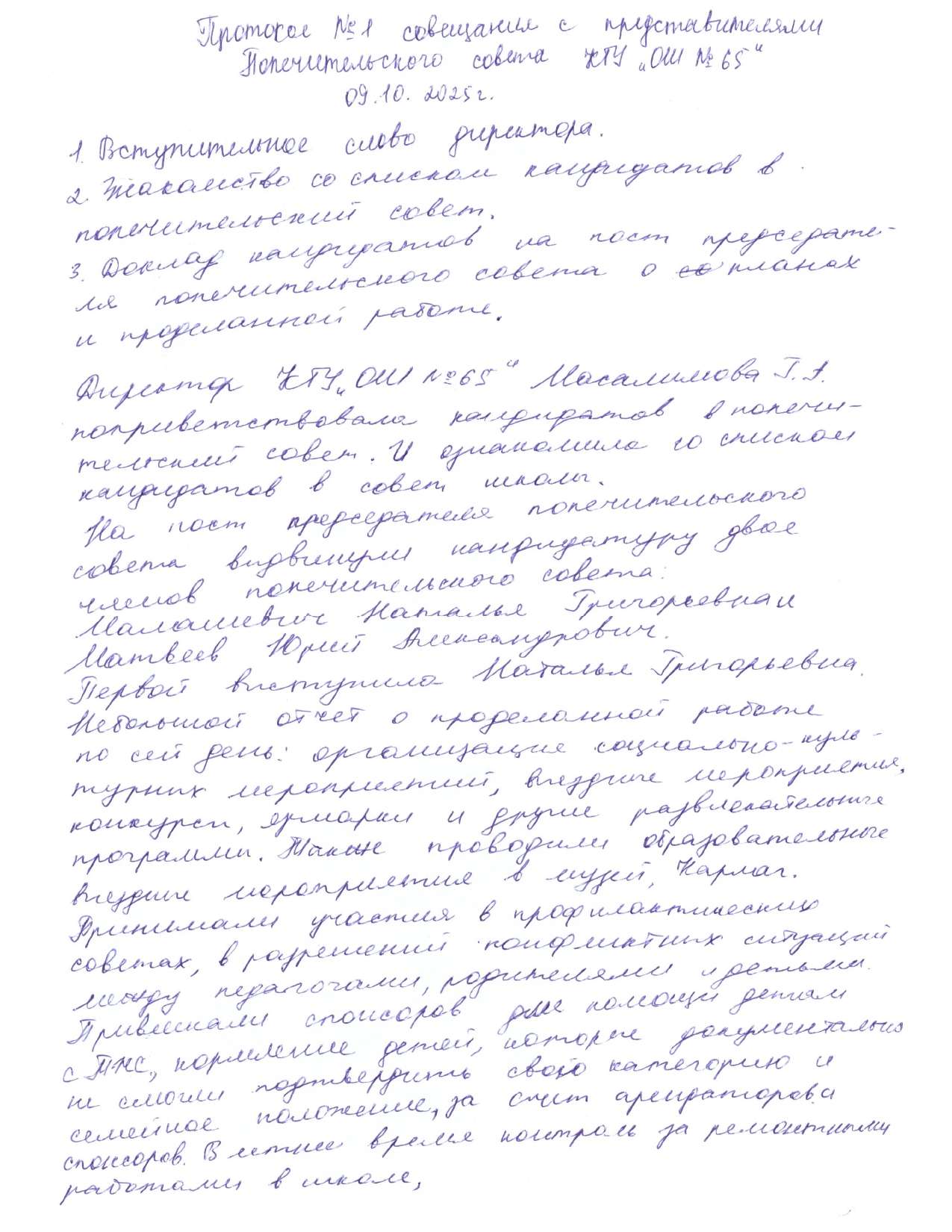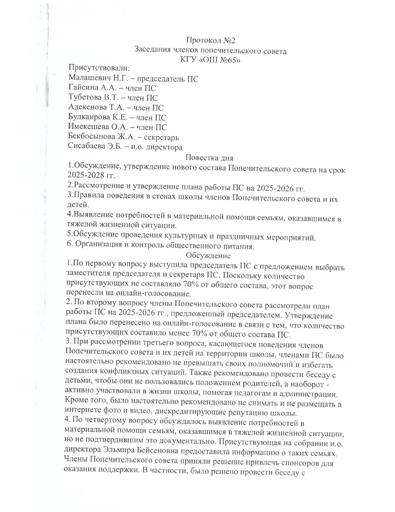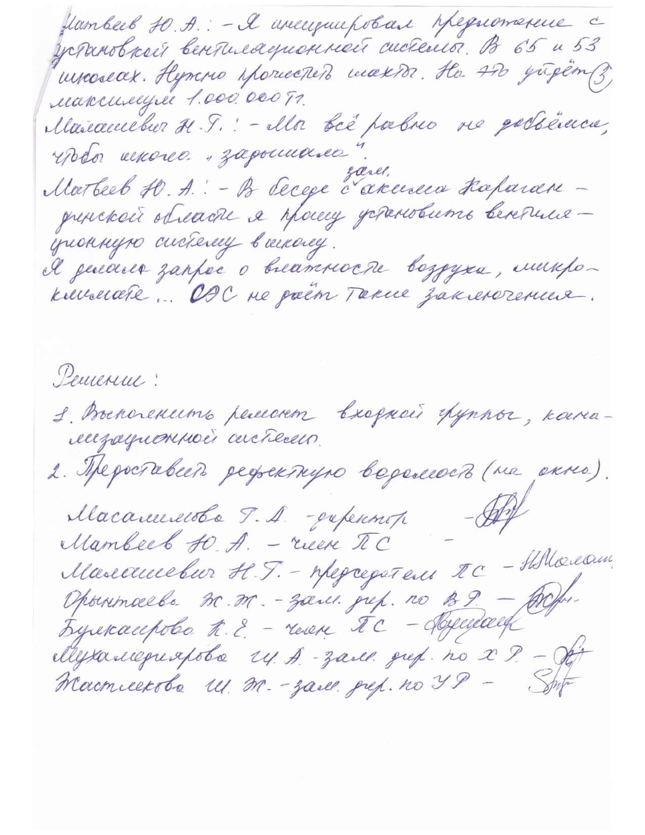 Был задан вопрос председателем ПС КГУ «ОШ №65» Малашевич Н.Г.: