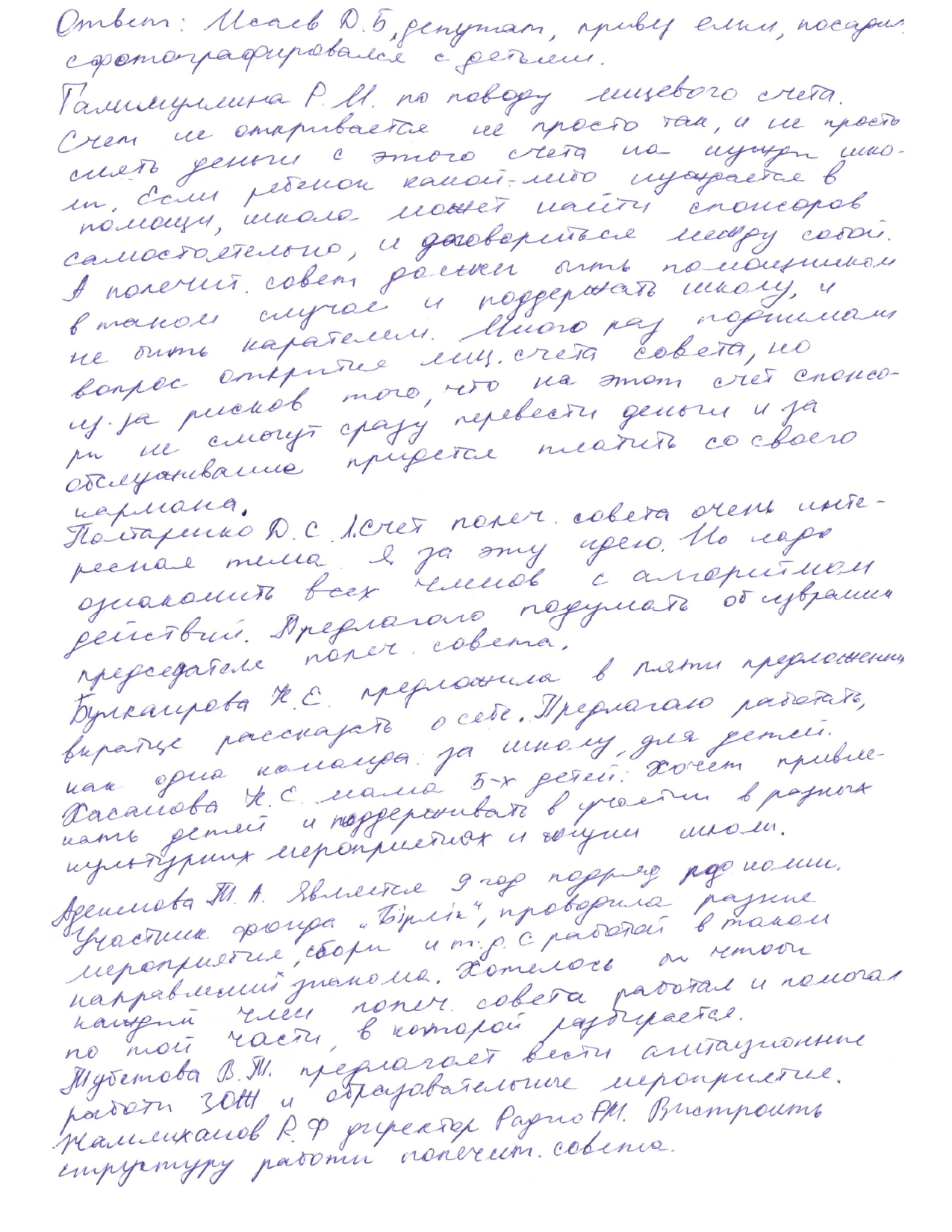 По второму вопросу слушали председателя Попечительского Совета школы Малашевич Наталью Григорьевну. Наталья Григорьевна предложила усилить работу по привлечению спонсоров по оказанию услуг школе. Всем членам ПС продолжать активно участвовать в учебно-воспитательных мероприятиях. Продолжать вести работу по оргаизации досуга учащихся в каникулярное время.