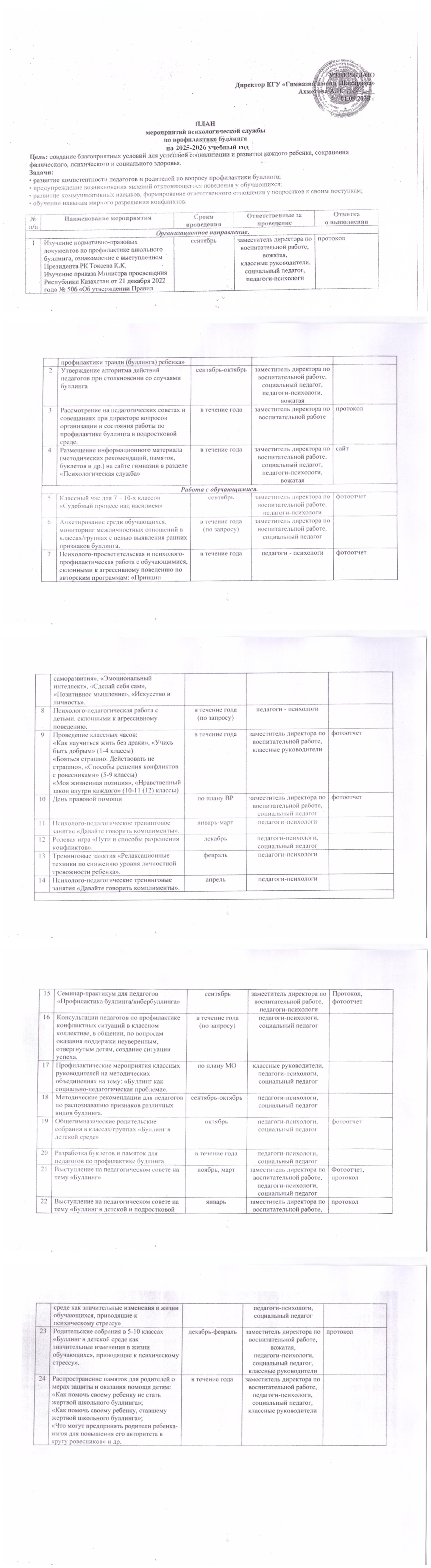 План по профилактике буллинга на 2025-2026 учебный год
