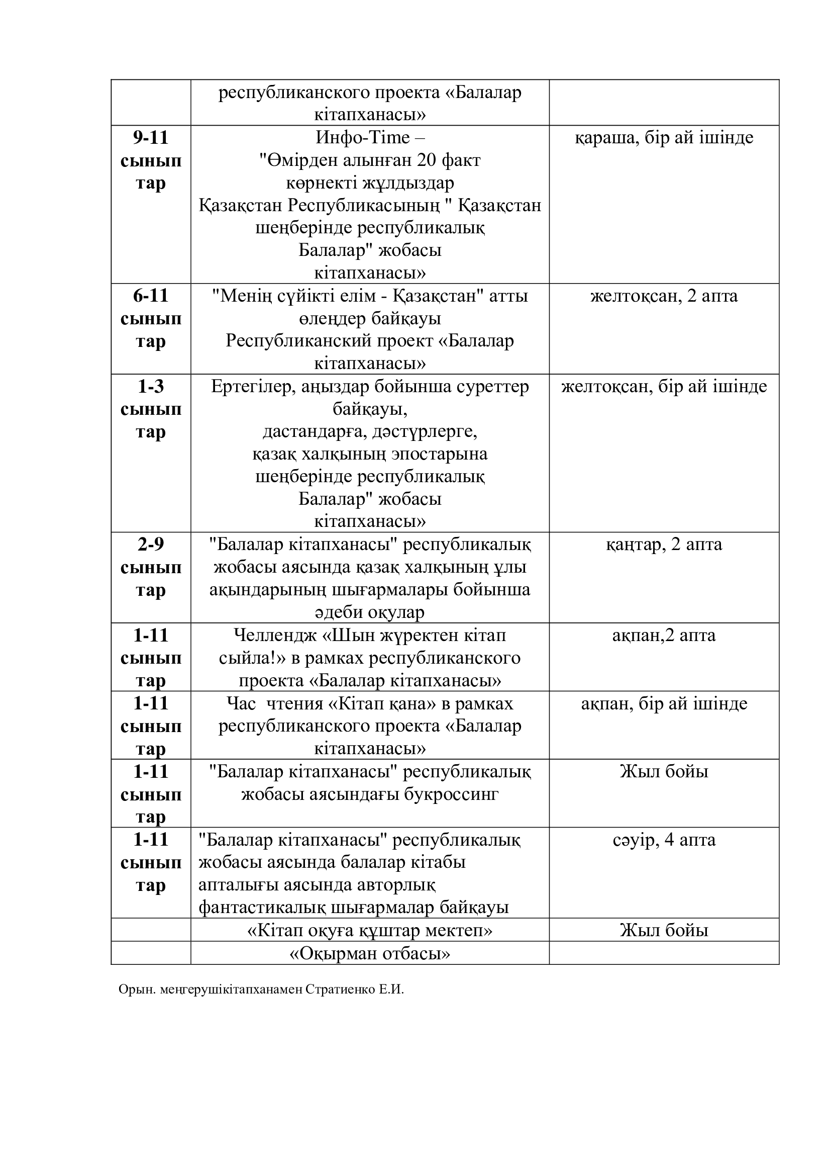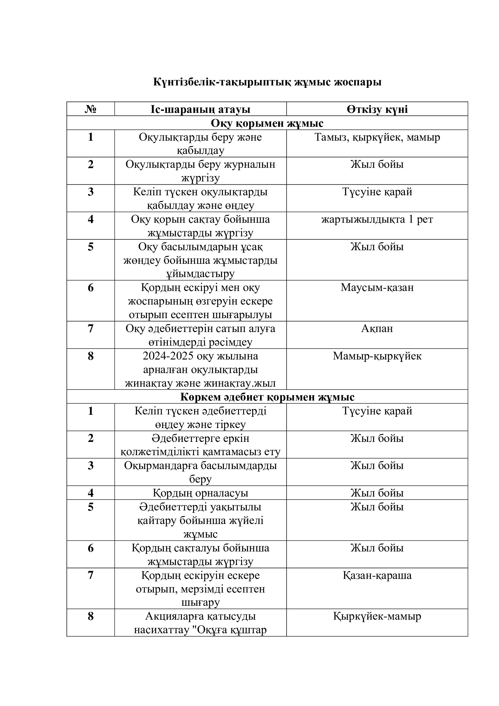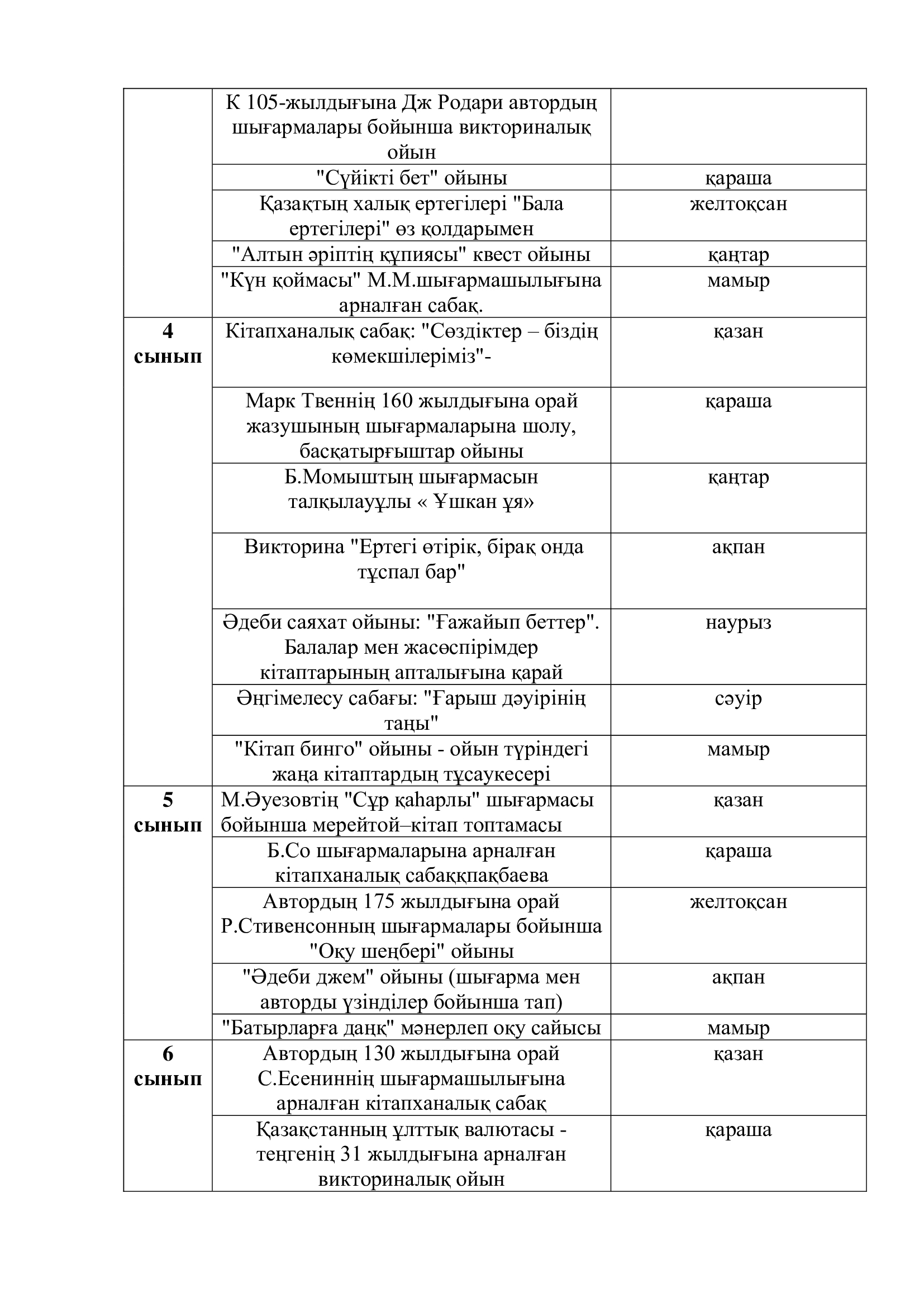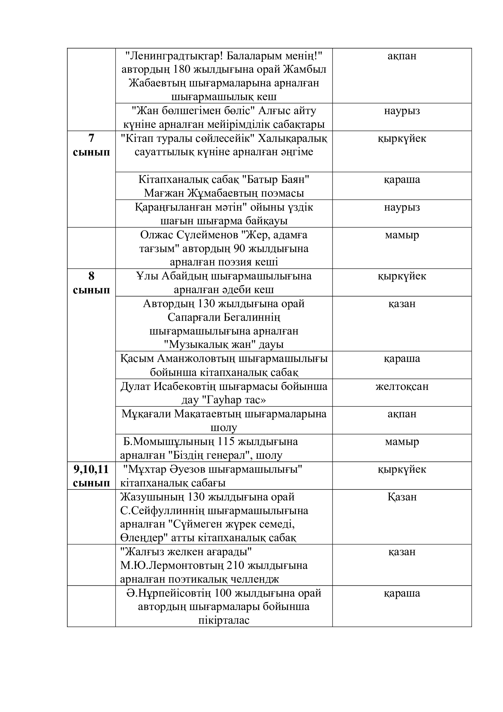 "№3 Гимназия" КММ мектеп кітапханасының жұмыс жоспары