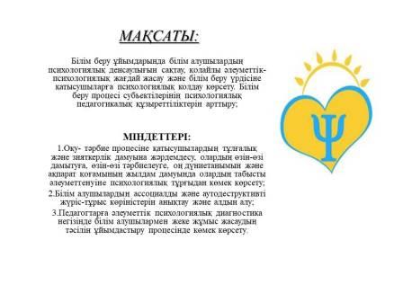 Место проведения: КГУ «СОШ №59», кабинет психолога