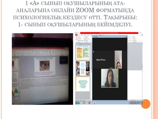 На собрании присутствовали: директор школы Балмуханова Д.К., Зам. директор по ВР Копбаева Л.Х., Зам. директор по УВР Жанатаева Г.А., классные руководители: 11 «А» класса - Амиева А.А., 11 «Ә» класса – Алентаева И.А., учителя – предметники, педагоги – психологи, родители. На собрании обсуждался вопрос по итогам пробного тестирования, дальнейшая совместная работа школы, родителей и будущих выпускников. Педагогами - психологами школы проводился тренинг в игровом формате. Для изложения информации использовался слайдовый материал, видео - ролики, родители получили памятки по подготовки к ЕНТ.