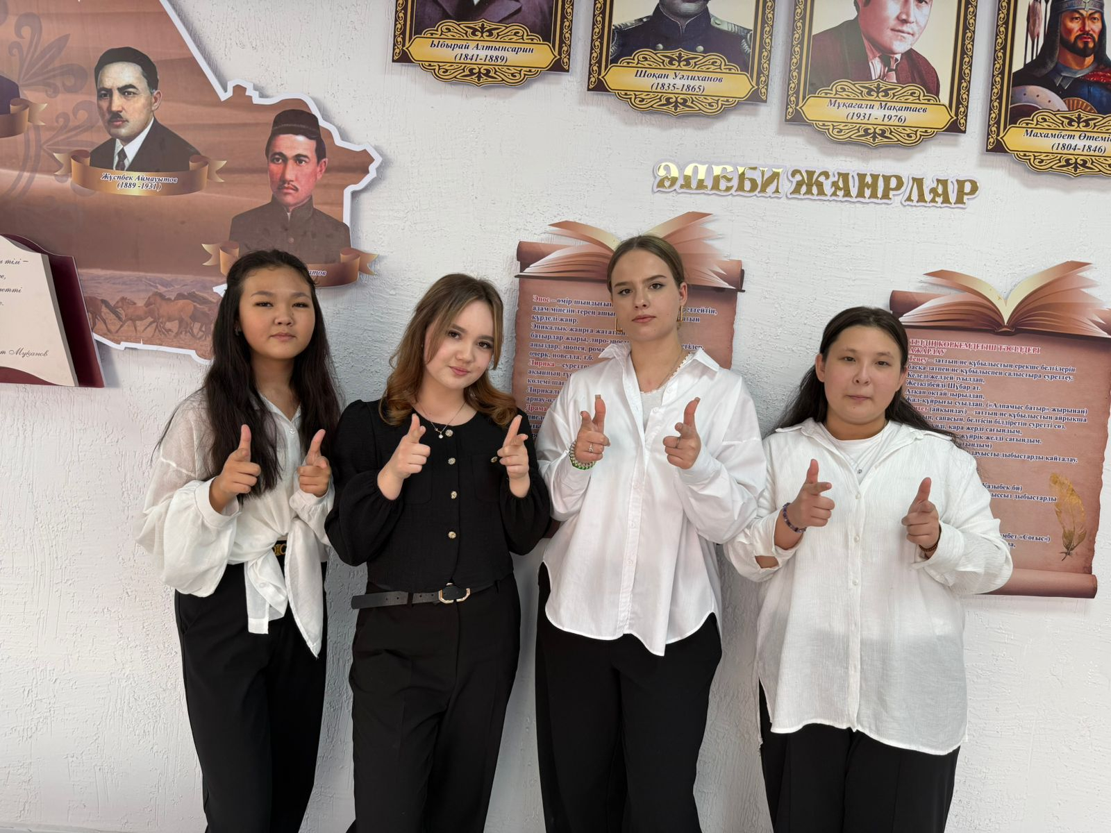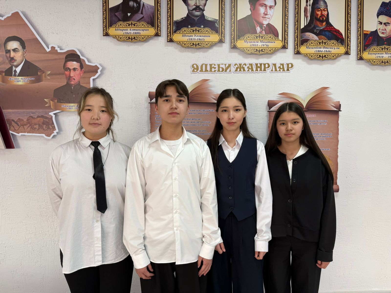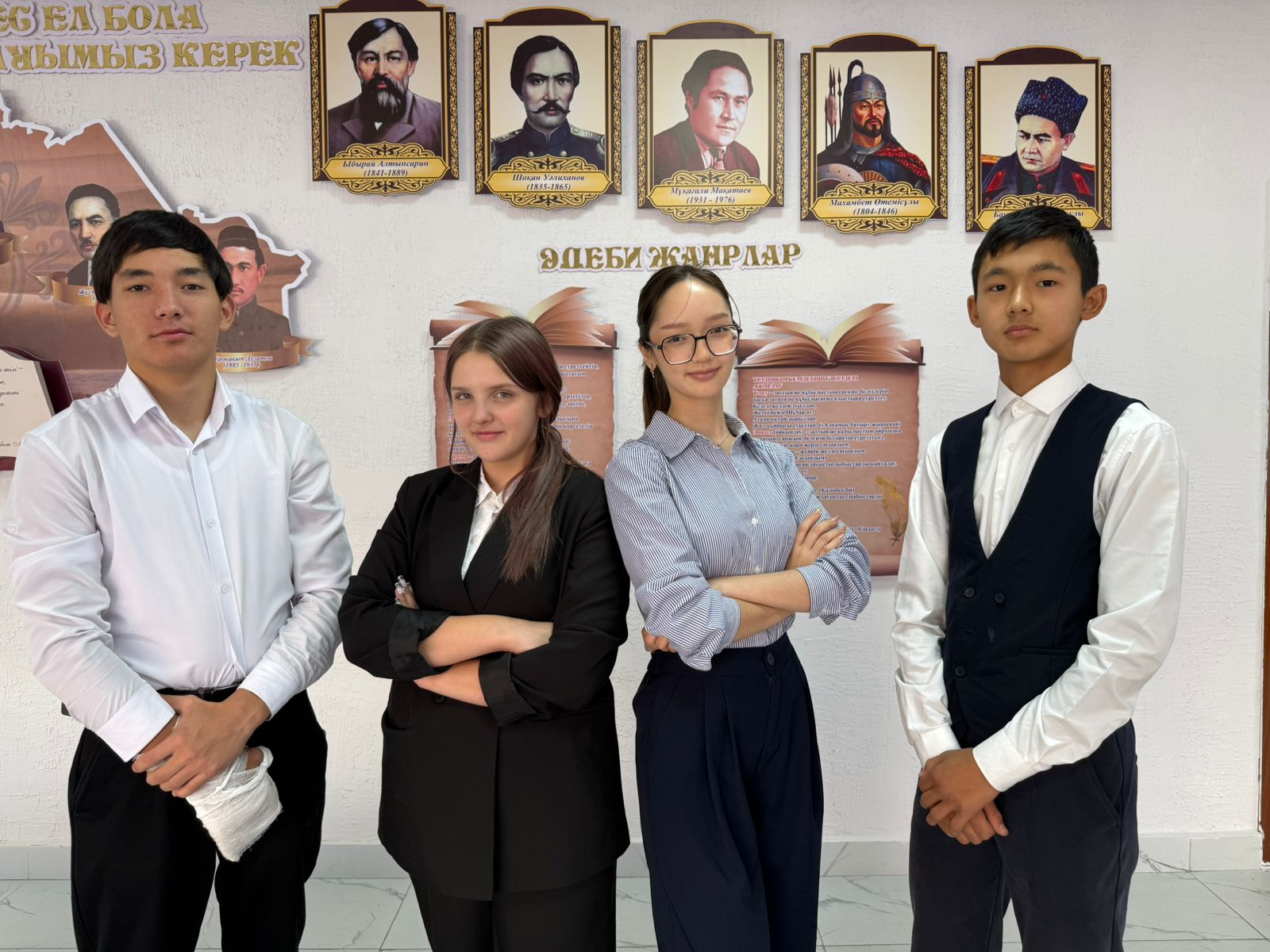Ақпарат фракциясы (Мектептің баспасөз қызметі) Қасым Дамир - Министр Абдуалиева Айзере Берікбай Анель Шаяхмет Жания |