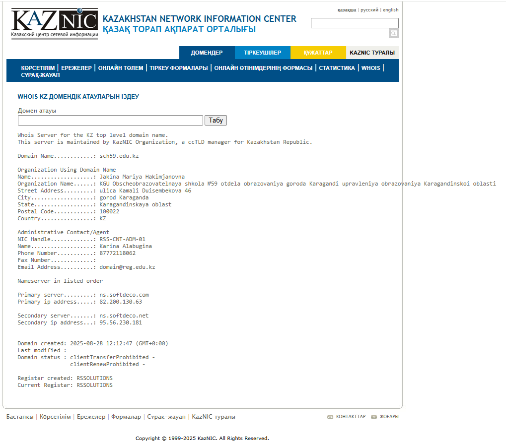 "№59 Жалпы білім беретін мектеп" КММ, 2025 год ( krg - sch59.edu.kz )