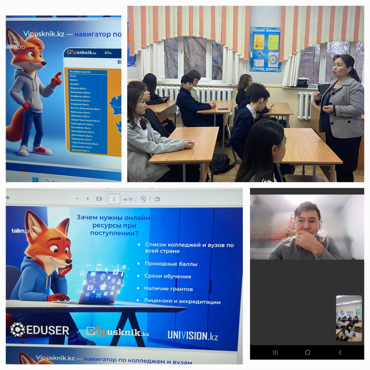 Специалисты, прибывшие в нашу школу из Международного казахско-турецкого университета имени Ходжи Ахмеда Ясави, провели профориентационную работу с учащимися 11 классов. Отвечали на вопросы учащихся, раздавали буклеты для изучения информации.