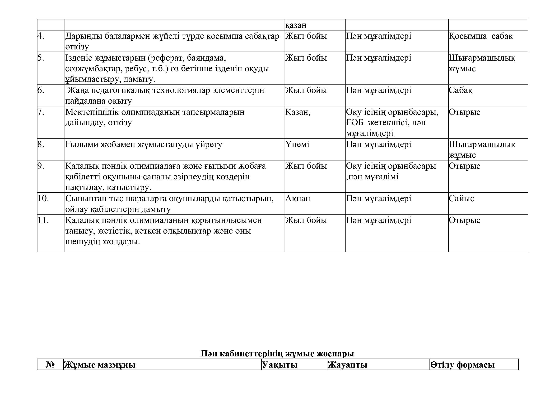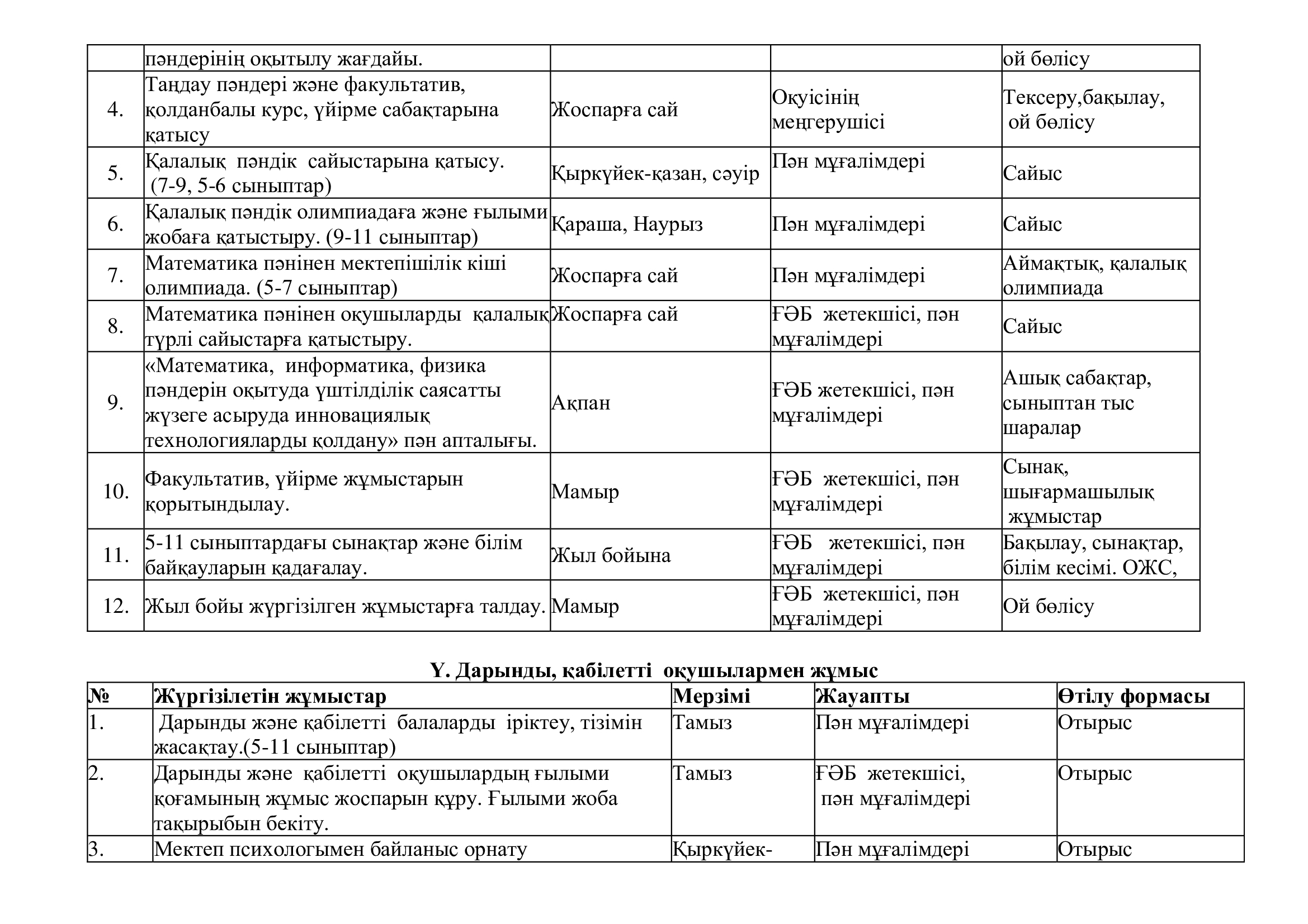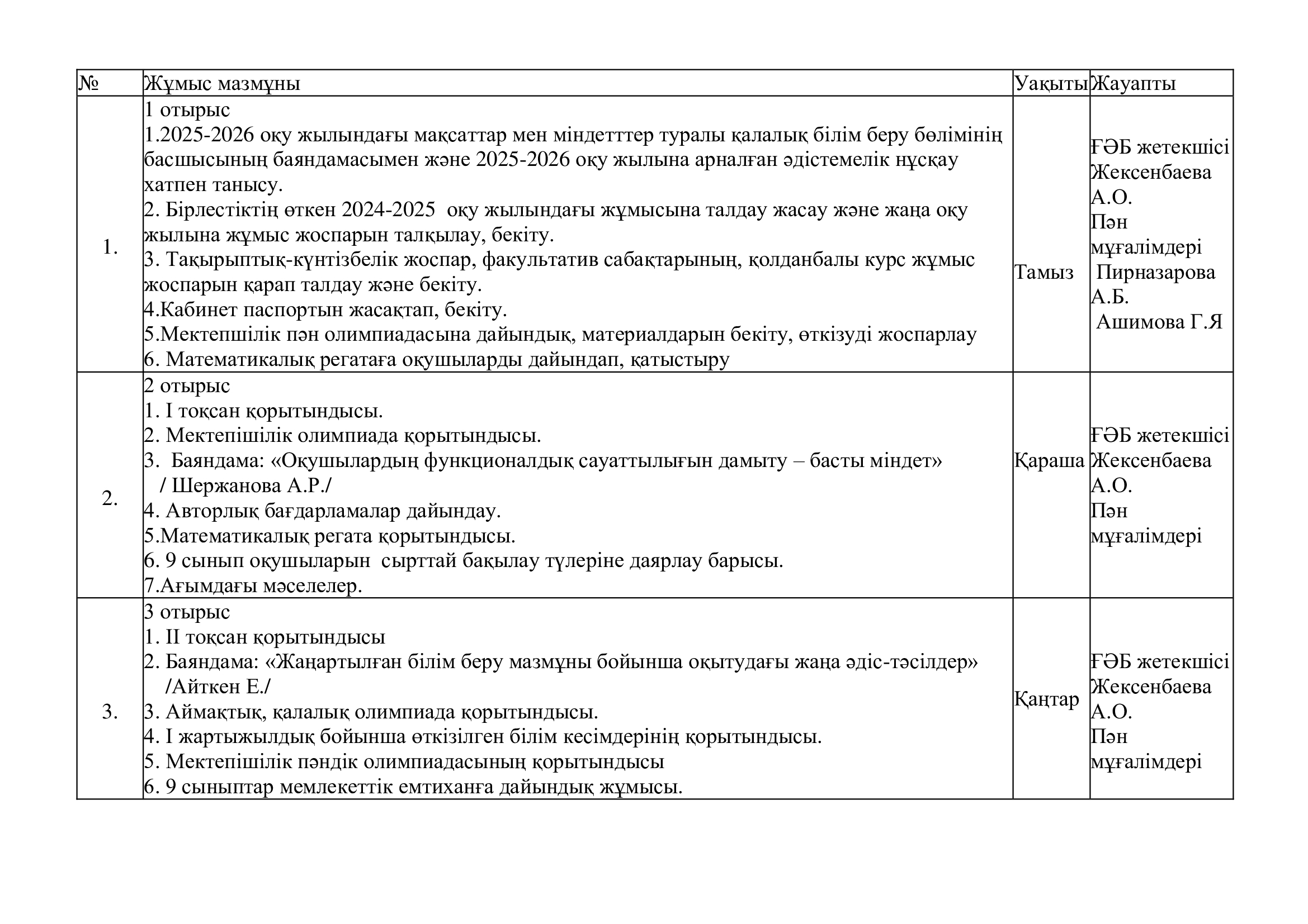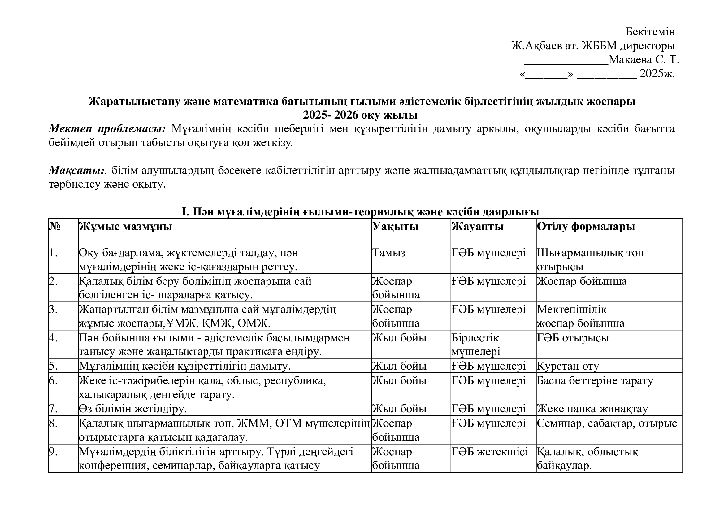 Жаратылыстану және математика бағытының ғылыми әдістемелік бірлестігінің жылдық жоспары