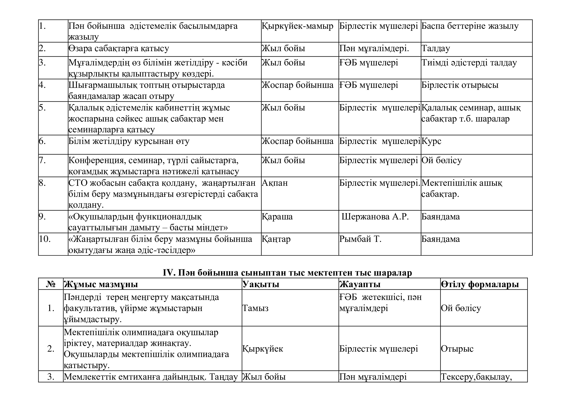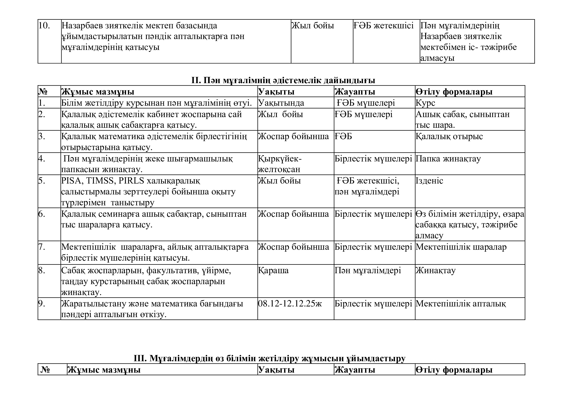 ІІІ. Мұғалімдердің өз білімін жетілдіру жұмысын ұйымдастыру
