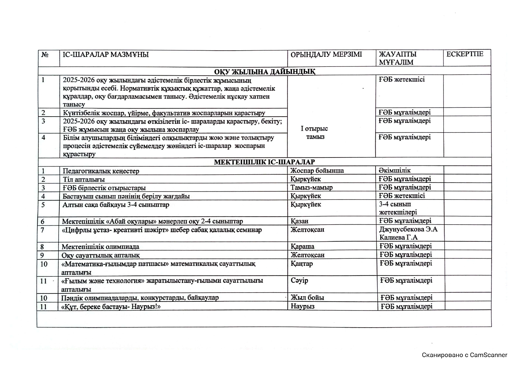 Бастауыш сынып әдістемелік бірлестігінің 2022-2023 оқу жылына арналған жұмыс жоспары