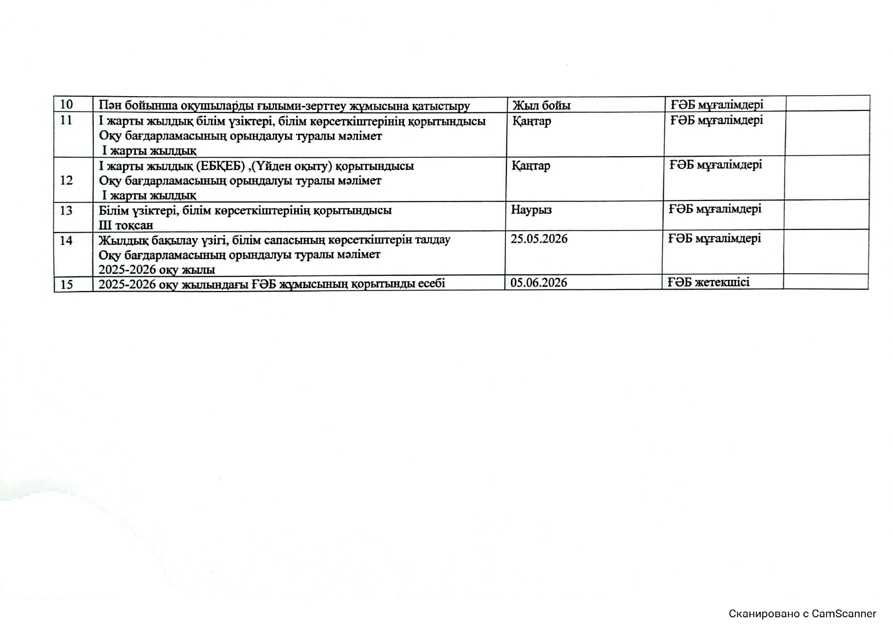 Жыл бойы істелген жұмыстарға сараптама жасау, оң- теріс нәтижелерді анықтау, келесі оқу жылына міндеттер  тағайындау