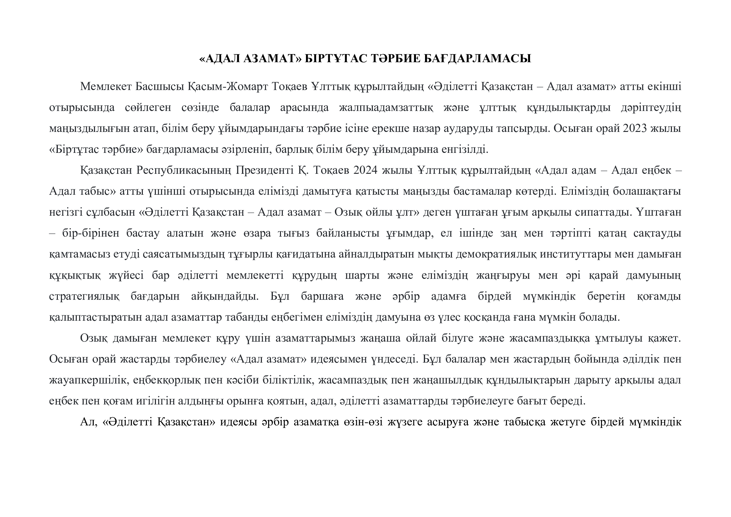 2023-2024 оқу жылындағы Республикалық Бірыңғай «ЖасҰлан» балалар мен жасөспірімдер