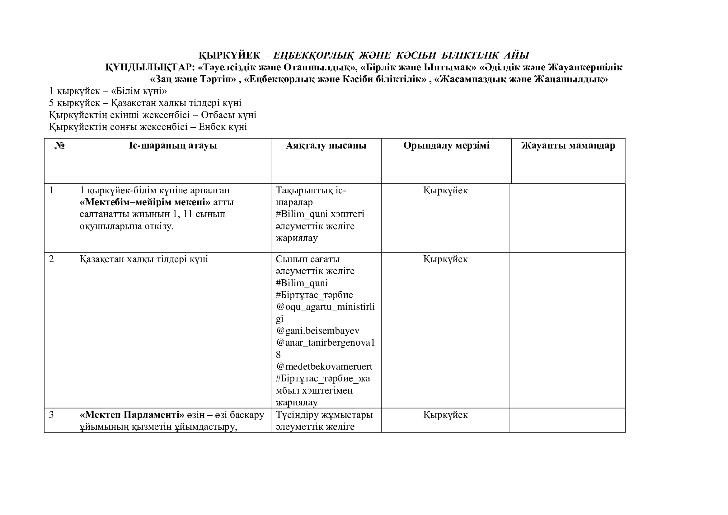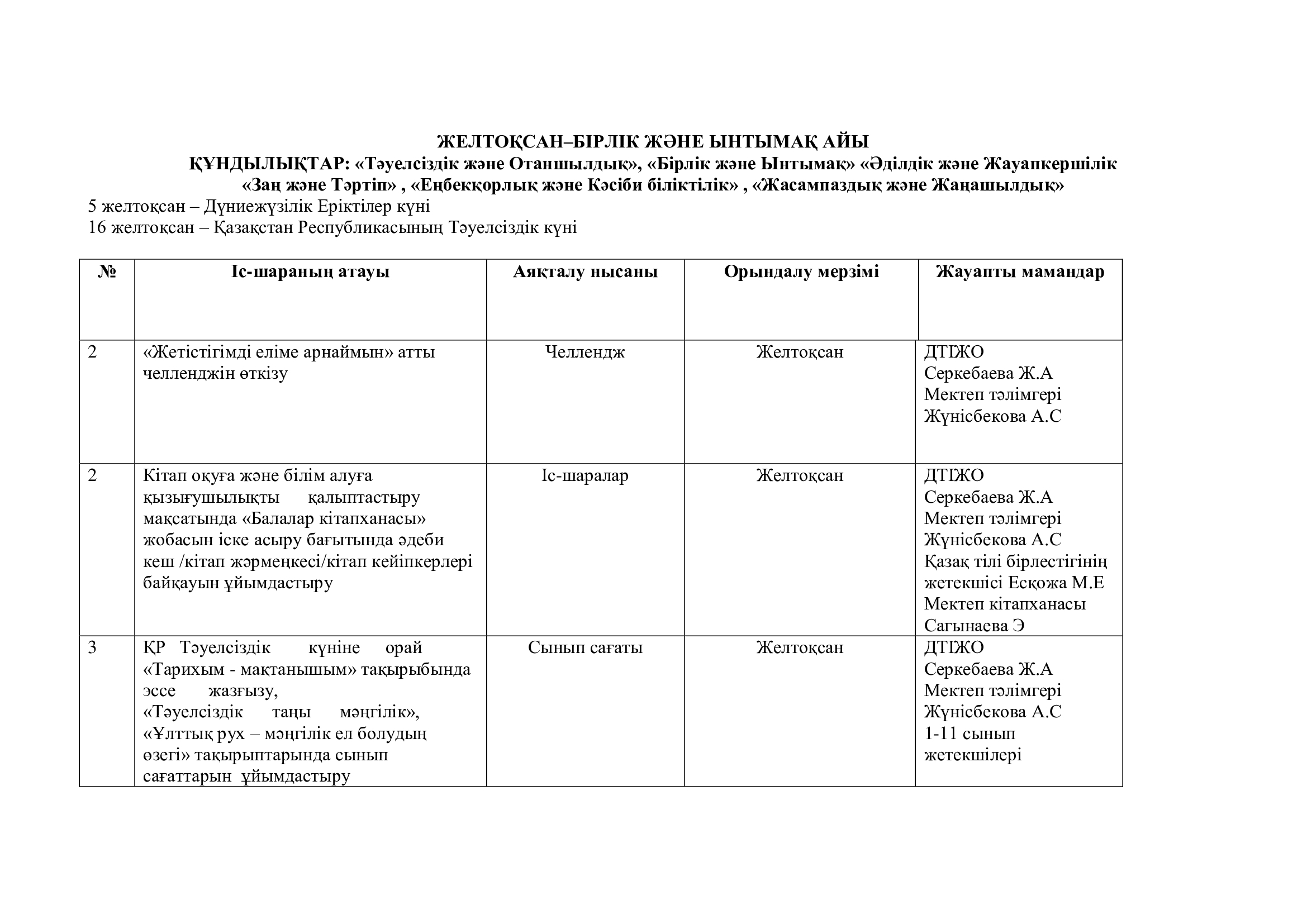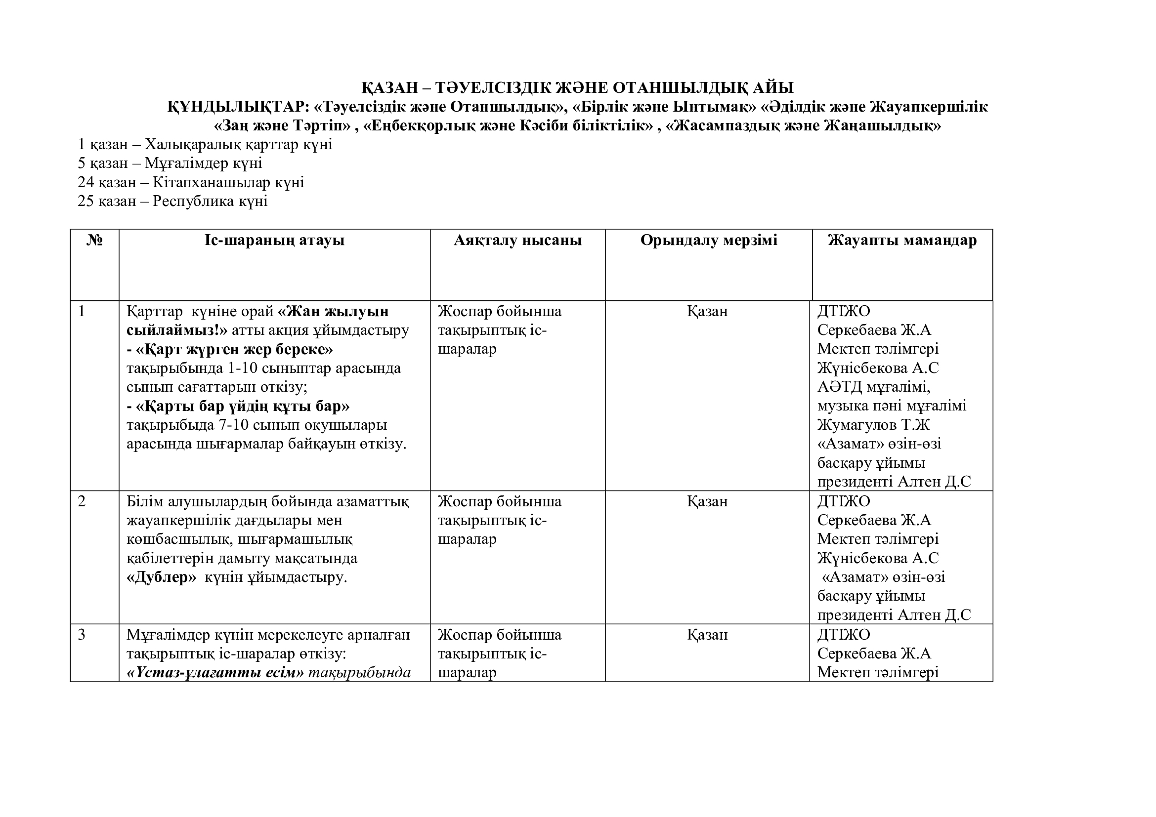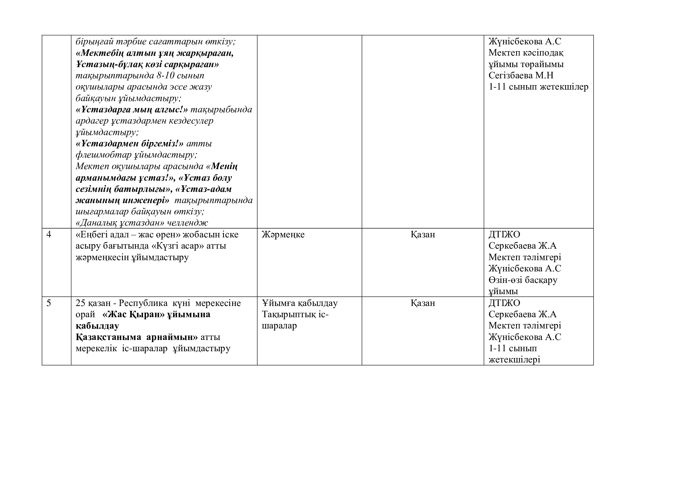 2023жылдың 24қазанында Республика күніне орай мектебімізде үздік оқушыларды Республикалық бірыңғай “Жас Ұлан” және “Жас Қыран” балалар мен жасөспірімдер ұйымы қатарына салтанатты түрде қабылдау өтті.         Еліміздің нағыз патриоттарын,еңбекқұмар,білімге құштар,салт дәстүріміз бен адамзаттық құндылықтарымызды қастерлейтін жас жеткіншектерді,отансүйгіш ұландарды тәрбиелеу мақсатында  Республикалық бірыңғай “Жас Ұлан” және “Жас Қыран” балалар мен жасөспірімдер ұйымы құрылған болатын.Жас ұлан ұйымына қабылданған оқушыларымызға туымыз түстес көгілдір галстук және төс белгілер табысталды.