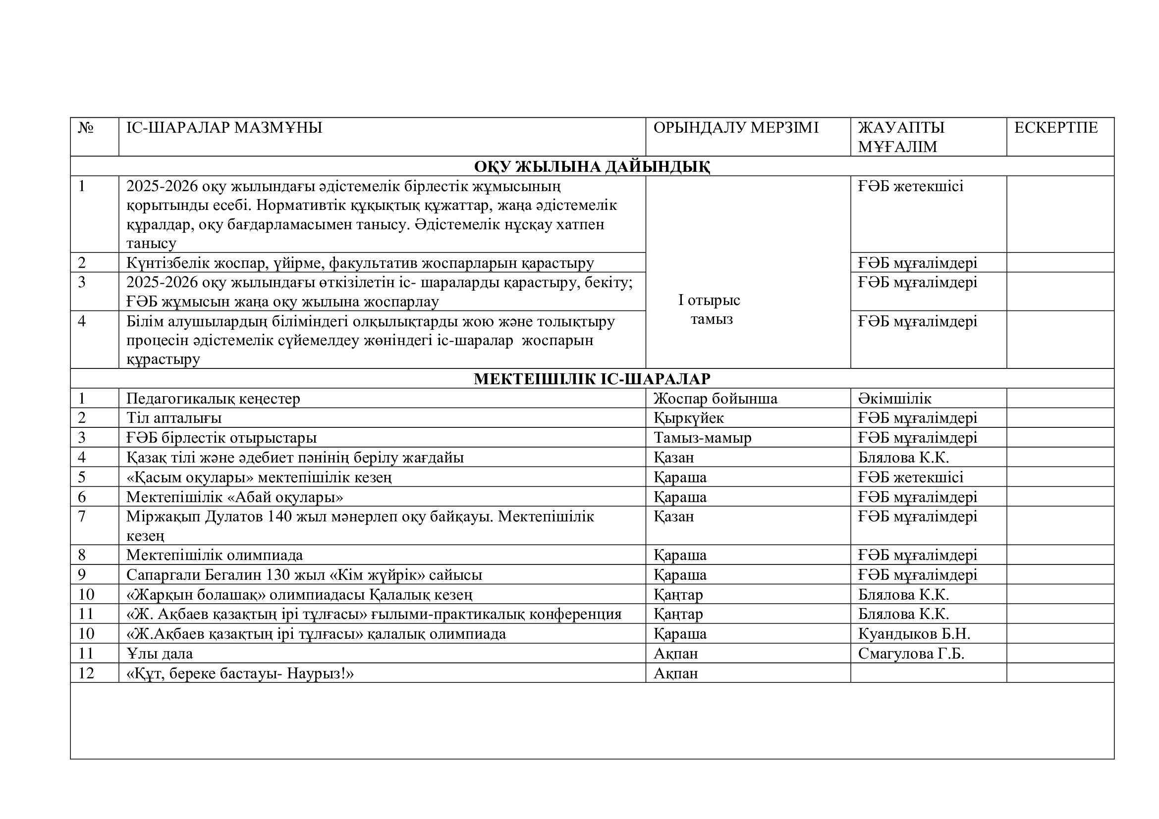 ҚАЗАҚ ТІЛІ ЖӘНЕ ӘДЕБИЕТ, ТАРИХ ПӘНДЕРІ ҒЫЛЫМИ-ӘДІСТЕМЕЛІК БІРЛЕСТІГІ