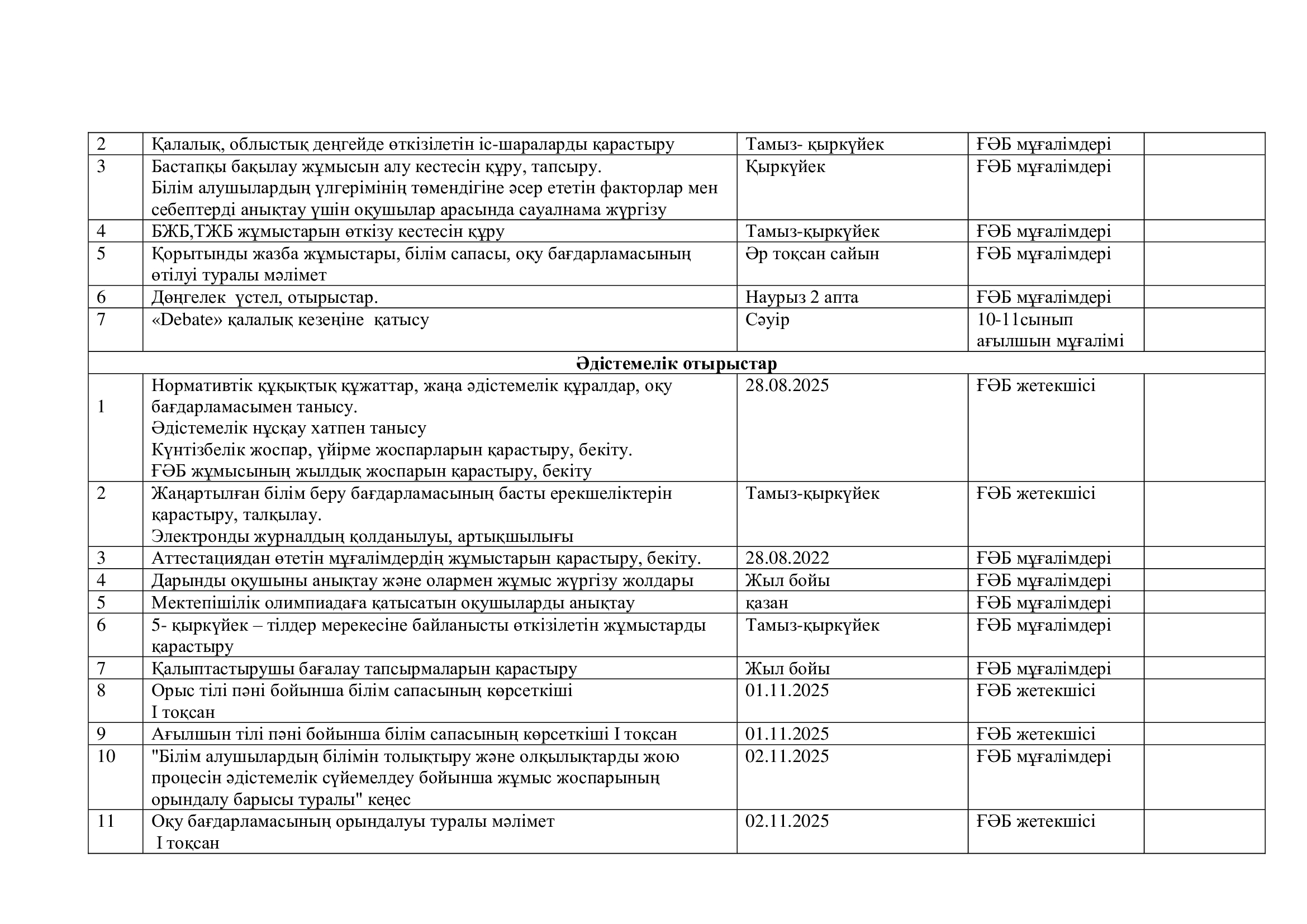 ҒӘБ жұмысының жылдық жоспарын қарастыру, бекіту