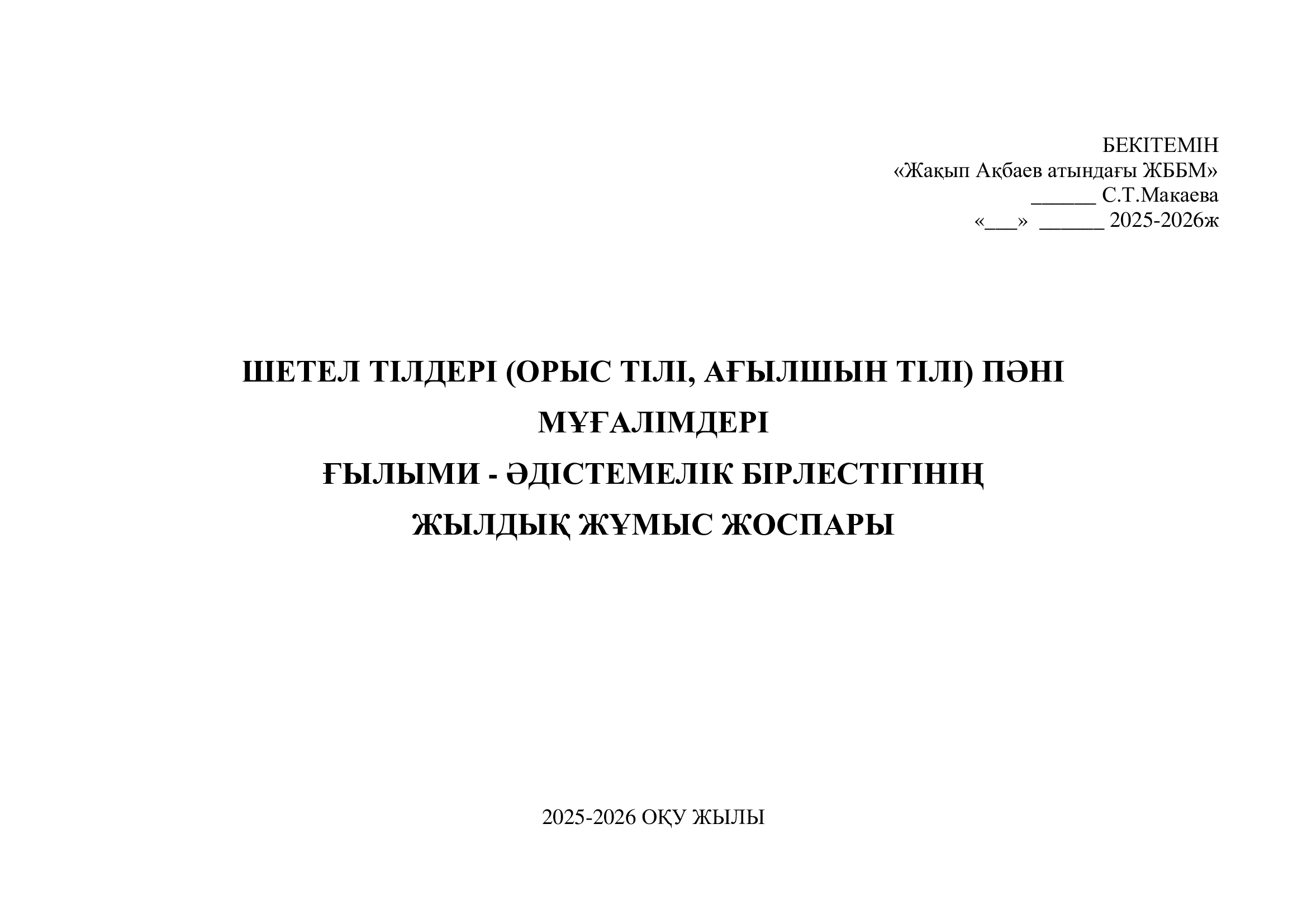 ЖЫЛДЫҚ ЖҰМЫС ЖОСПАРЫ