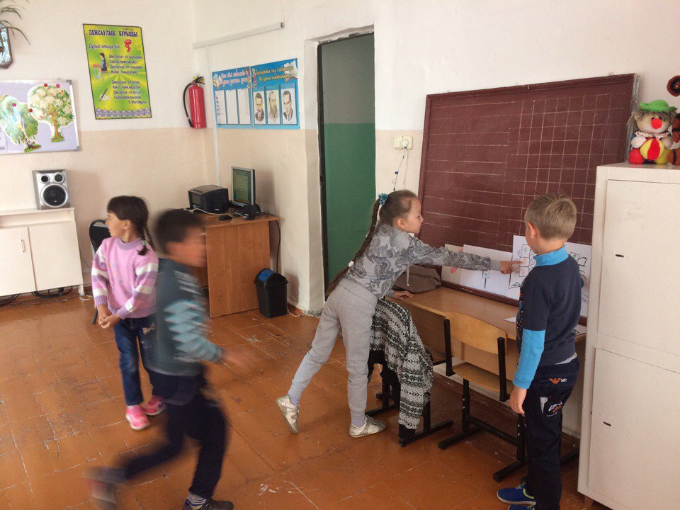 Мақсаты:балалардың ағылшын тілінде мектеп алаңын туралы жаңа сөздермен таныстыру және балалардың өз мектеп алаңында орналасқан заттардың атауын барлығын ағылшын тілінде айту