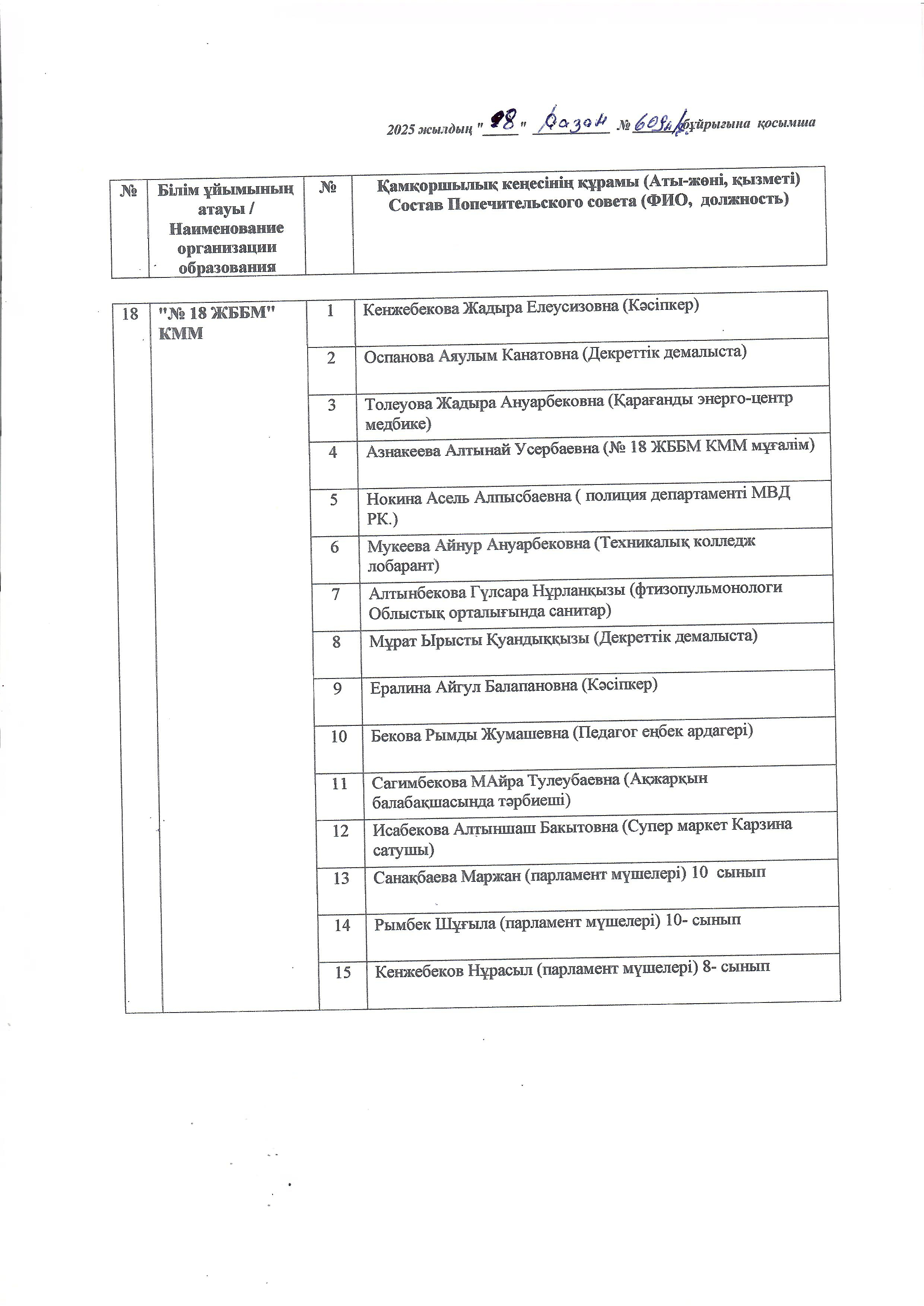 Қамқоршылық кеңесі құрамы