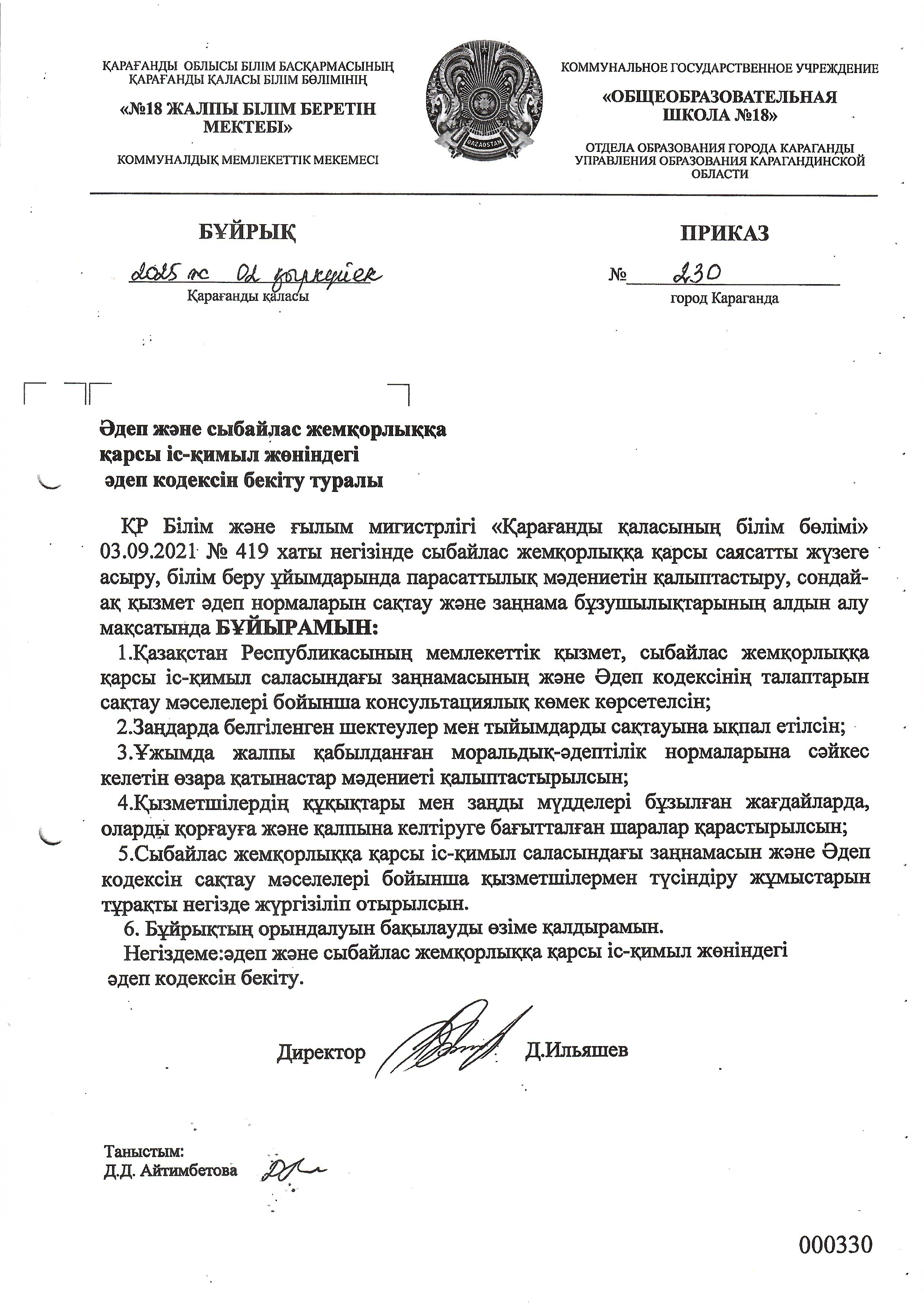 2. Сыбайлас жемқорлыққа қарсы стандартты әзірлеуші «№18 ЖББМ» КММ (құрылымдық бөлімше)болып табылады.