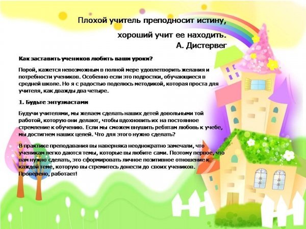 Приближается то время, когда ваш ребенок будет носить гордое звание первоклассника. И в связи с этим у родителей возникает масса волнений и переживаний: где и как подготовить ребенка к школе, нужно ли это, что ребенок должен знать и уметь перед школой, в шесть или семь лет отдать его в первый класс и так далее. Универсального ответа на эти вопросы нет – каждый ребенок индивидуален. Некоторые дети уже в шесть лет полностью готовы к школе, а с другими детьми в семь лет возникает много хлопот. Но одно можно сказать точно – готовить детей к школе обязательно нужно, потому что это станет отличным подспорьем в первом классе, поможет в обучении, значительно облегчит адаптационный период. Что нужно знать родителям, занимаясь с ребенком дома? Домашние занятия с ребенком очень полезны и необходимы будущему первокласснику. Они положительно влияют на развитие ребенка и помогают в сближении всех членов семьи, установлении доверительных отношений. Но такие занятия не должны быть для ребенка принудительными, его необходимо в первую очередь заинтересовать, а для этого лучше всего предлагать интересные задания, а для занятий выбрать наиболее подходящий момент. Не надо отрывать ребенка от игр и садить его за стол, а постарайтесь увлечь его, чтобы он сам принял ваше предложение позаниматься. Кроме этого, занимаясь с ребенком дома, родители должны знать, что в пять-шесть лет дети не отличаются усидчивостью и не могут долгое время выполнять одно и то же задание. Занятие дома не должно продолжаться более пятнадцати минут. После этого следует сделать перерыв, чтобы ребенок отвлекся. Очень важна смена деятельности. Например, сначала вы в течение десяти-пятнадцати минут выполняли логические упражнения, потом после перерыва можно заняться рисованием, далее поиграть в подвижные игры, после чего полепить из пластилина забавные фигуры и т. п. Родители должны знать и еще одну очень важную психологическую особенность детей дошкольного возраста: их основным видом деятельности является игра, через которую они развиваются и получают новые знания. То есть все задания должны преподноситься малышу в игровой форме, а домашние занятия не должны превращаться в учебный процесс. Но занимаясь с ребенком дома, даже не обязательно отводить для этого какое-то конкретное время, развивать своего малыша можно постоянно. Например, когда вы гуляете во дворе, обратите внимание ребенка на погоду, поговорите о времени года, подметьте, что выпал первый снег или у деревьев начали опадать листья. На прогулке можно посчитать количество лавочек во дворе, подъездов в доме, птиц на дереве и так далее. На отдыхе в лесу познакомьте ребенка с названиями деревьев, цветов, птиц. То есть старайтесь, чтобы ребенок обращал внимание на то, что его окружает, что происходит вокруг него. Если ваш ребенок посмотрел мультфильм, попросите рассказать о его содержании – это станет хорошей тренировкой речи. При этом задавайте вопросы, чтобы ребенок видел, что это для вас действительно интересно. Обращайте внимание на то, правильно ли ребенок при рассказывании произносит слова и звуки, если есть какие-то ошибки, то деликатно говорите о них ребенку и исправляйте. Разучивайте с ребенком скороговорки и стишки, пословицы.