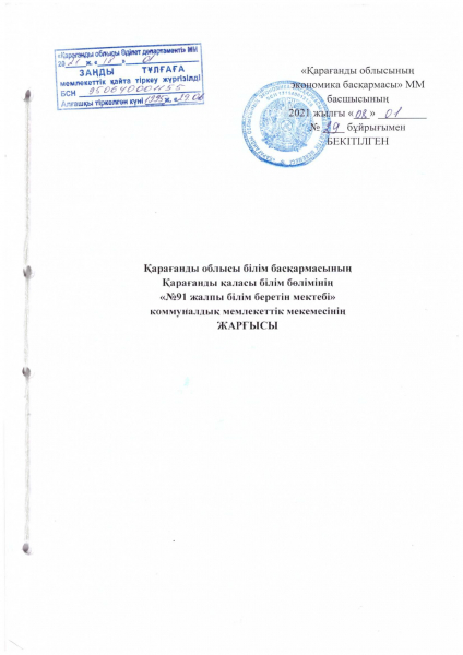 №91ЖББОМ 2020-2021 оқу жылына арналған жұмыс кестесі