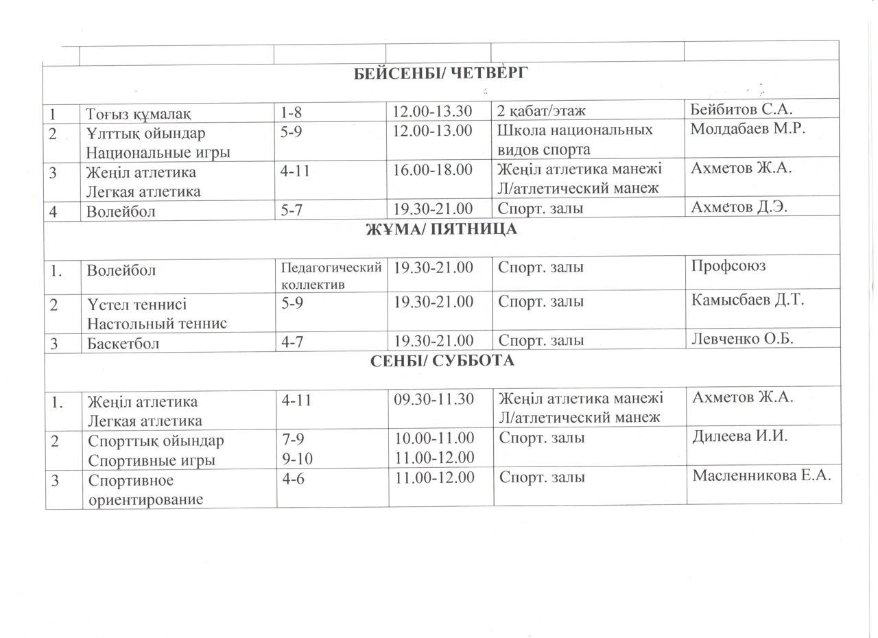 Үйірмелер мен секциялардың өткізілу кестесі